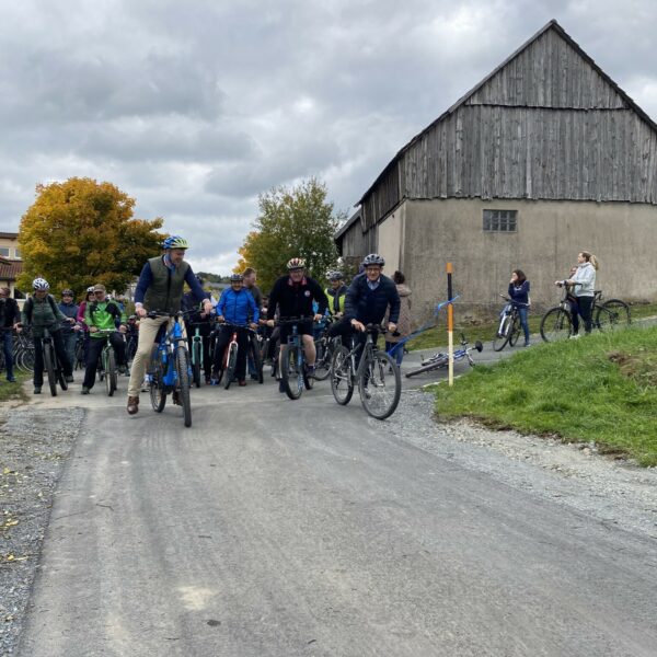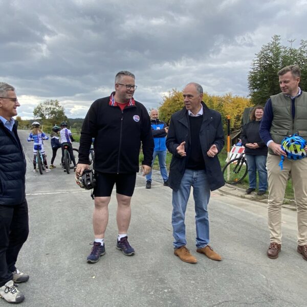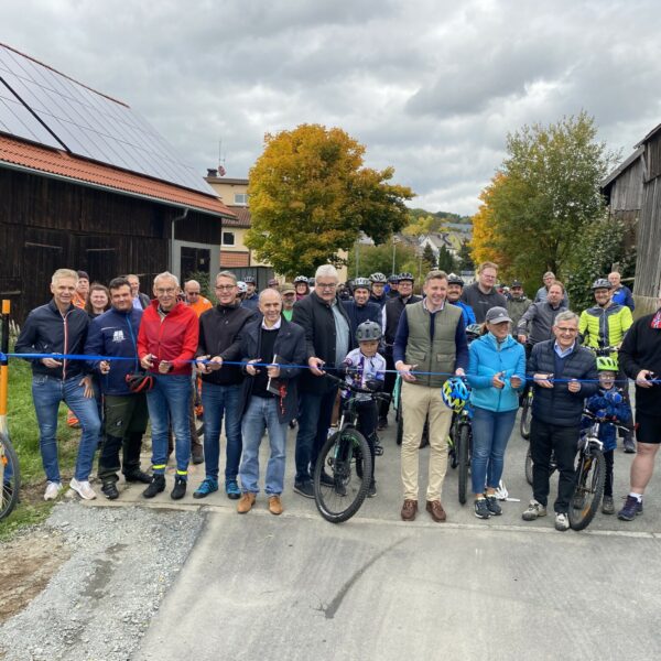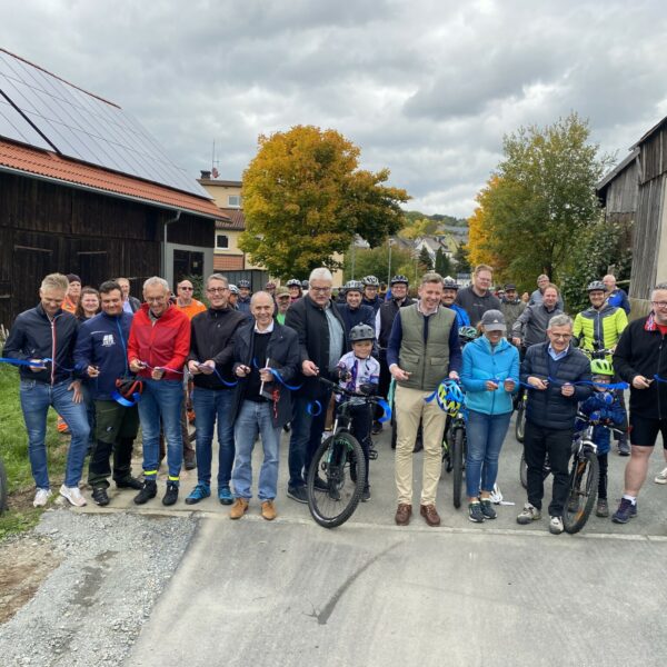 Landrat Dr. Oliver Bär eröffnete mit zahlreichen Radlerinnen und Radlern aus den umliegenden Gemeinden den neuen Abschnitt: „Mit unseren Radwegen können wir nicht nur Verbindungen schaffen, sondern vor allem auch Lebensqualität im Landkreis Hof und sogar darüber hinaus im wahrsten Sinne des Wortes erfahrbar machen.“