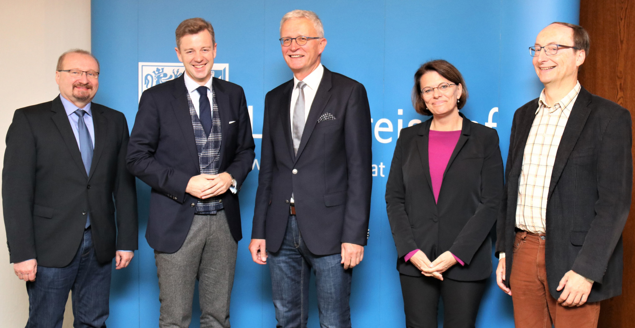 Regierungsdirektor Berthold Bär, Leiter Geschäftsbereich 2 Personalwesen, Landrat Dr. Oliver Bär, Werner Schuberth, Personalratsvorsitzende Gabriele Roth und Stefan Gebhardt, Fachbereichsleiter Personalstelle.