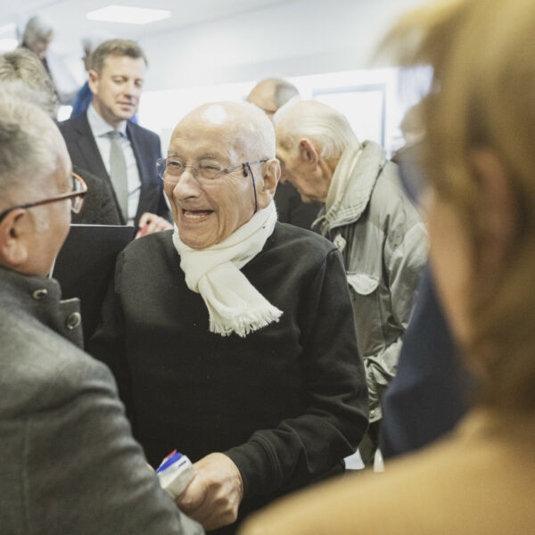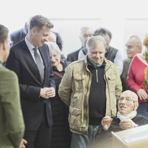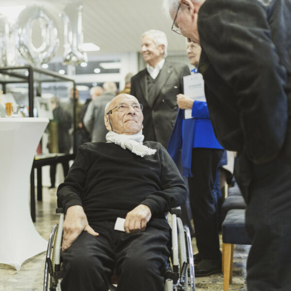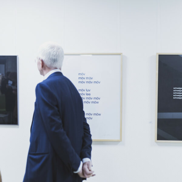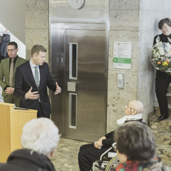 Der überraschende Besuch zur Vernissage von Prof. Eugen Gomringer und Tochter Nora Gomringer erfreute die Besucher sehr und somit konnte auch ein direktes Geburtstagslied im Rathaus-Foyer angestimmt werden. Neben Bürgermeister Michael Abraham hat auch Landrat Dr. Oliver Bär gratuliert und betont, wie wichtig das Tun von Gomringer für uns alle ist. Somit wird unsere Kulturregion weit über die Grenzen geschätzt.