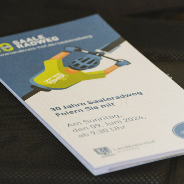 - Falt-Flyer für die Fahrrad- oder Hosentasche, der kurz und bündig einen Überblick über den Saaleradweg im Hofer Land gibt und auf Highlights entlang der Strecke hinweist.