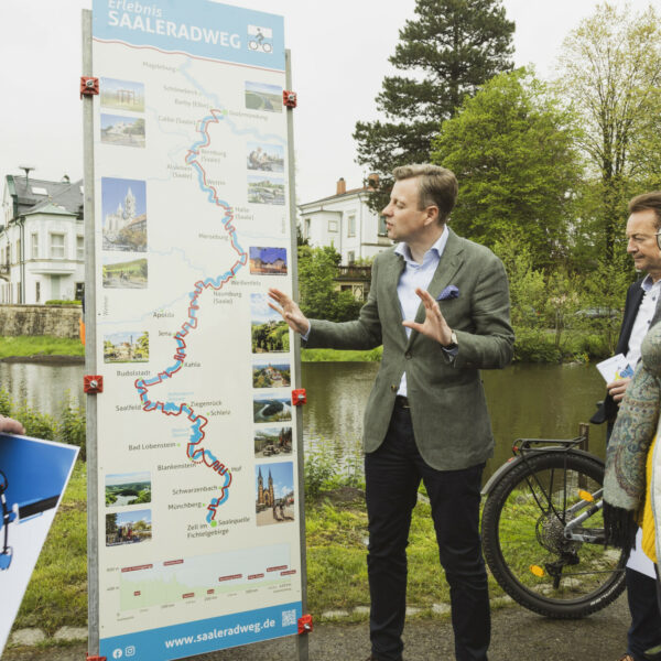 „Es ist uns ein besonderes Anliegen, das Jubiläumsjahr zu nutzen, um nachhaltig auf den großen Schatz hinzuweisen, den wir mit dem Saaleradweg in unserer Region haben“, erklärt Landrat Dr. Bär.