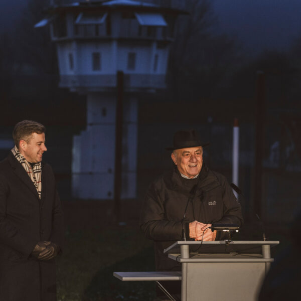 „Wir feiern dieses Jahr ‚35 Jahre Mauerfall‘ an vielen Orten, weil wir eine Region der Einheit sind. Es ist eine schöne Tradition, an die Glücksmomente zu erinnern, und es freut mich, dass wir heute einerseits Zeitzeugen zu Wort kommen lassen, aber auch durch erste Einblicke in ein neues VR-Projekt Mödlareuth auf besondere Art und Weise erlebbar machen“, so Landrat Dr. Oliver Bär, Vorsitzender des Zweckverbandes Deutsch-Deutsches Museum Mödlareuth.