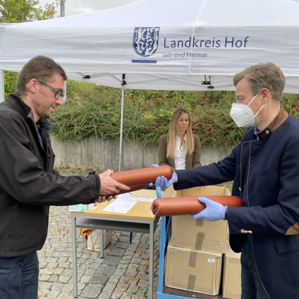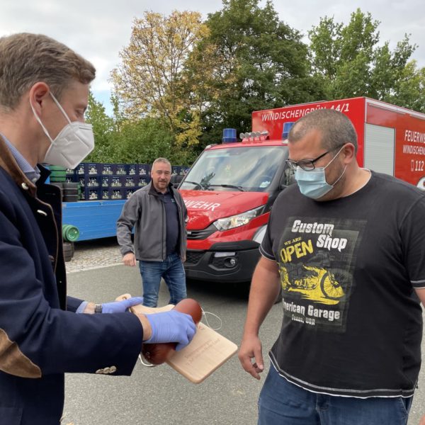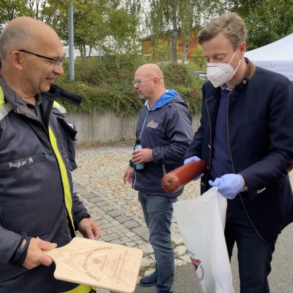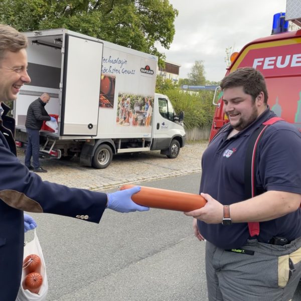 Mit einer „Brotzeit to go“ hat sich der Hofer Landrat Dr. Oliver Bär hat jetzt bei knapp 2.000 Einsatzkräften aus dem Hofer Land bedankt. Die Ehrenamtlichen von über 100 Feuerwehren, des THW, BRK sowie der DLRG waren beim Starkregenereignis in der Nacht vom 13. auf den 14. Juli im Einsatz, leisteten darüber hinaus in den Folgetagen wichtige Hilfe bei den Aufräumarbeiten.