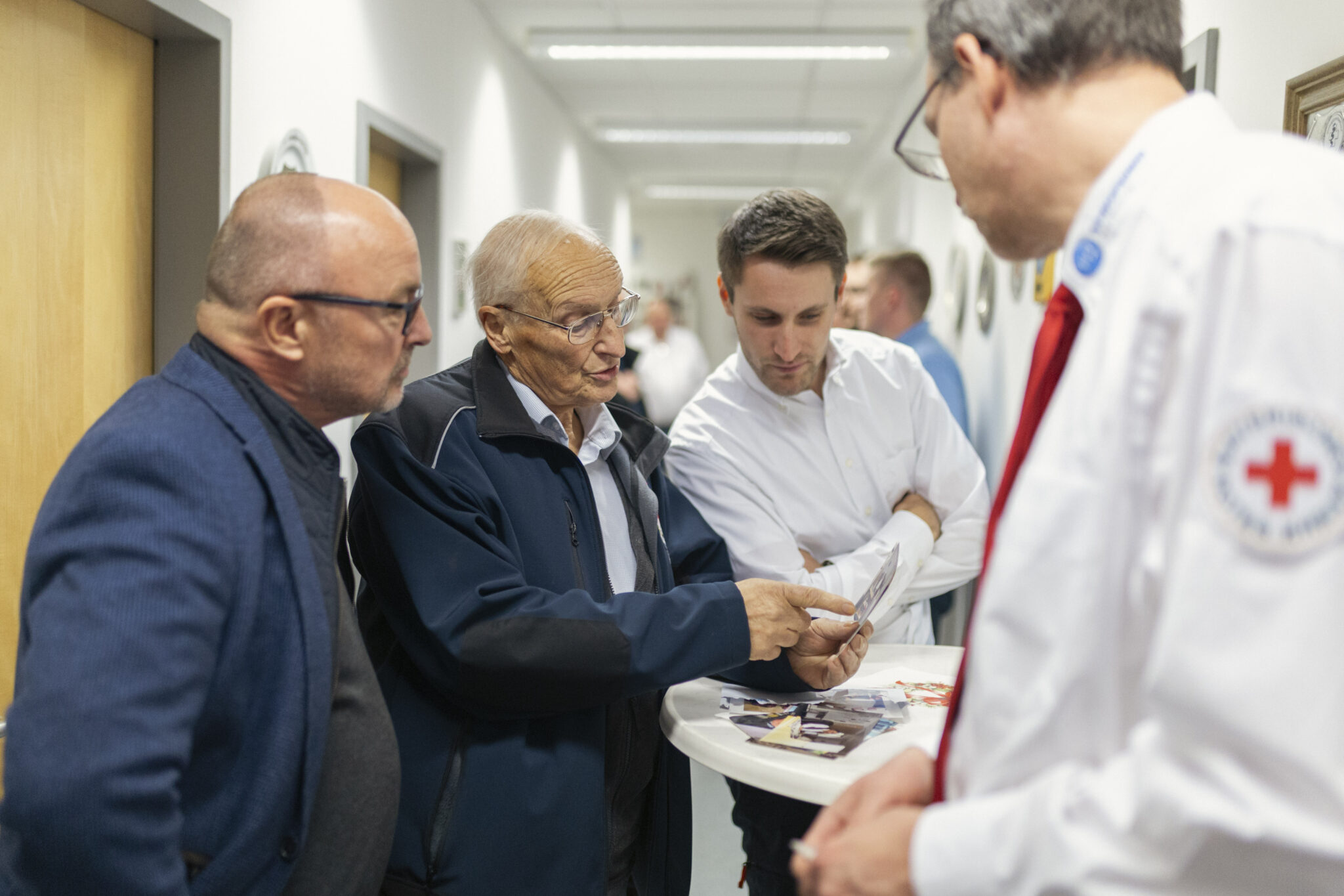 In dieser Zeit arbeitet Heinz Herzig unter anderem mit Harald Scherzer zusammen - ein weiteres Urgestein bei BRK. Auch er ist zur Feierstunde gekommen und erinnert sich gerne an die Zeit in der Leitstelle zurück: „Ich bin wirklich jeden Tag gerne in die Leitstelle gegangen, weil wir auch immer eine gute Gemeinschaft hatten. Einen klassischen Betriebsurlaub gab es bei uns nicht – den gibt es in der Leitstelle bis heute nicht. Auch an Weihnachten oder an Feiertagen lief der Dienst ganz normal weiter. Aber gerade an diesen Tagen hat man besonders gemerkt, wie eng der Zusammenhalt war. Dann haben wir uns im Dienst auch mal eine Gans gegönnt und Weihnachten gemeinsam hier in der Leitstelle verbracht.“