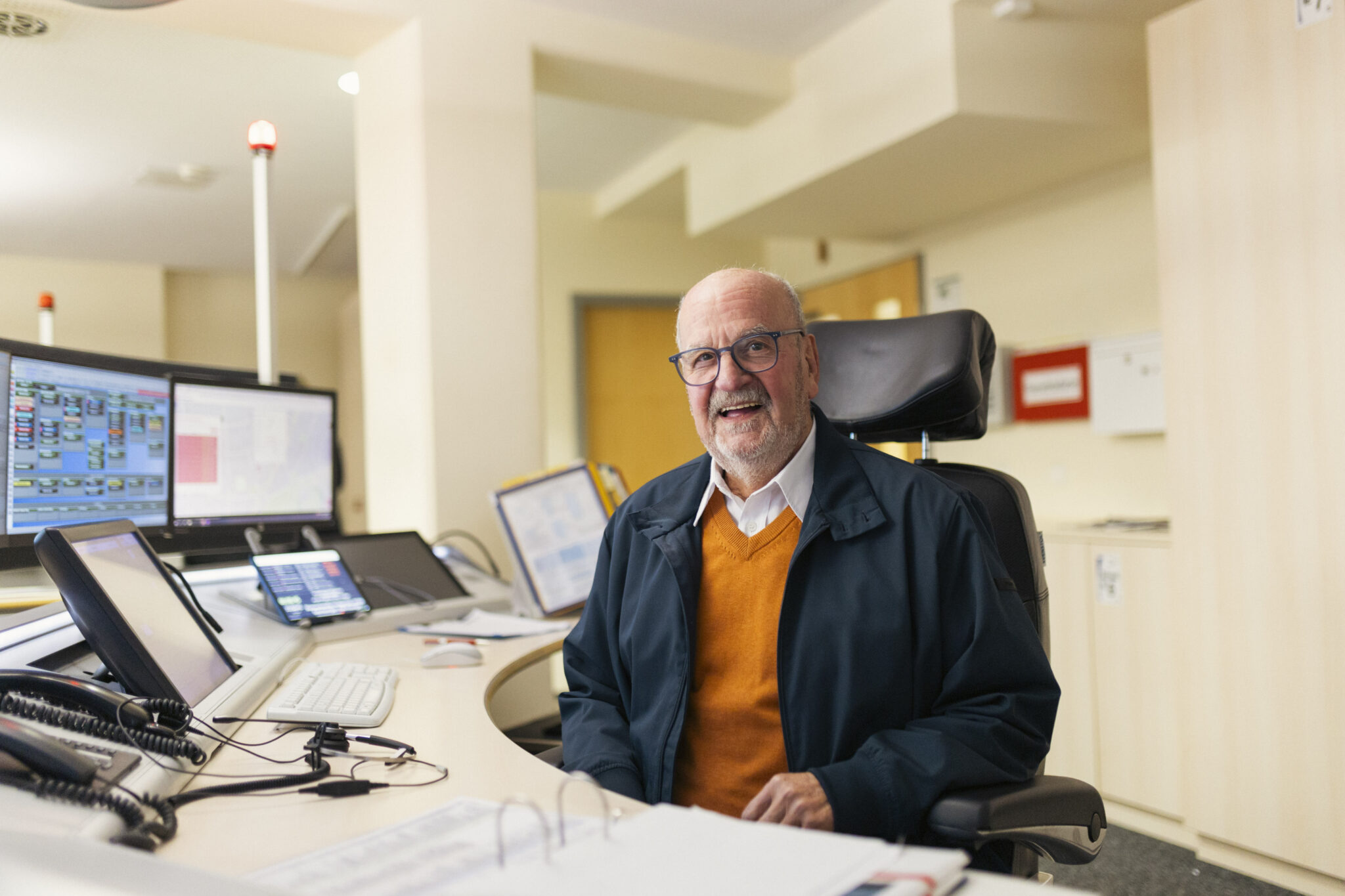 „Wir“– das waren zu Beginn gerade einmal sechs Mitarbeiter, die den sogenannten 24 Stunden-Dienst schoben. „Zwei am Vormittag, zwei am Nachmittag und nachts eine Person“, für die es auch schon mal brenzlig werden konnte, wenn etwa die Blase gedrückt hat, man aber am Platz sein musste, weil „wenns geklingelt hat, dann musst man ja da sein“, sagt Heinz Herzig und schmunzelt.