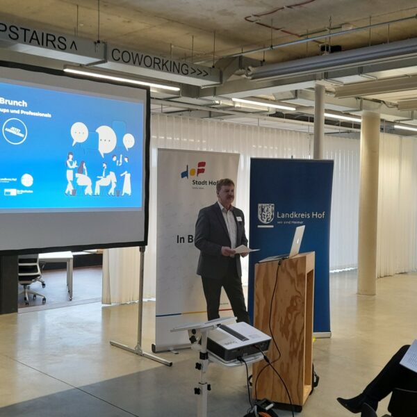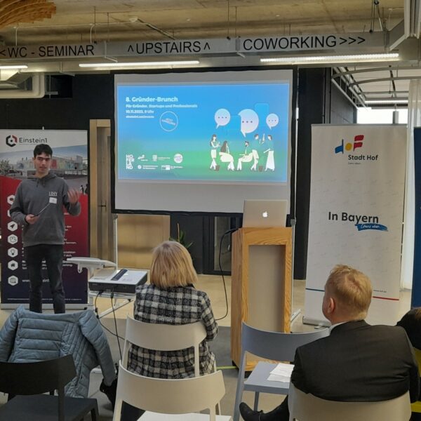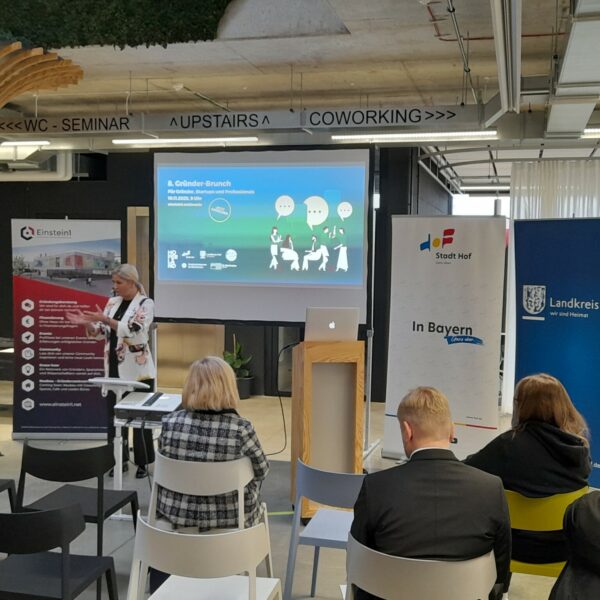 Rund 30 Interessierte hatten sich hierfür im Digitalen Gründerzentrum Einstein1 eingefunden, um sich zum einen aus erster Hand zu relevanten Themen zu informieren und zum anderen auch die Gelegenheit zum Netzwerken zu nutzen. Hierfür waren u.a. die Experten der Wirtschaftsförderungen der Stadt Hof sowie der Landkreise Hof und Wunsiedel i. Fichtelgebirge, von LfA, IHK, Invest in Bavaria, Aktivsenioren, Einstein1 und von regionalen Wirtschaftsverbänden anwesend, um im persönlichen Gespräch zu informieren und Unterstützung anzubieten.