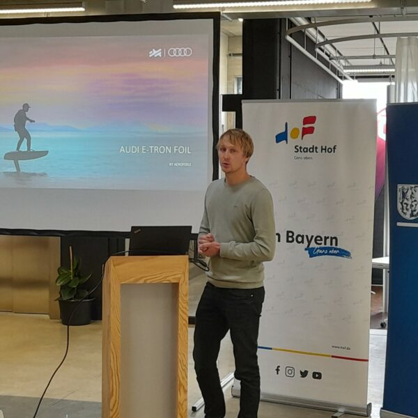 Im Mittelpunkt des Vormittags standen die beiden Impulsvorträge von Tim Röber (LINY-Bikes aus Bayreuth) und Thomas Rausch (Aerofoils GmbH aus Weißdorf), die aus der Praxis von ihren Gründungen berichteten und viele Tipps und Anregungen für die Anwesenden mitgebracht hatten.