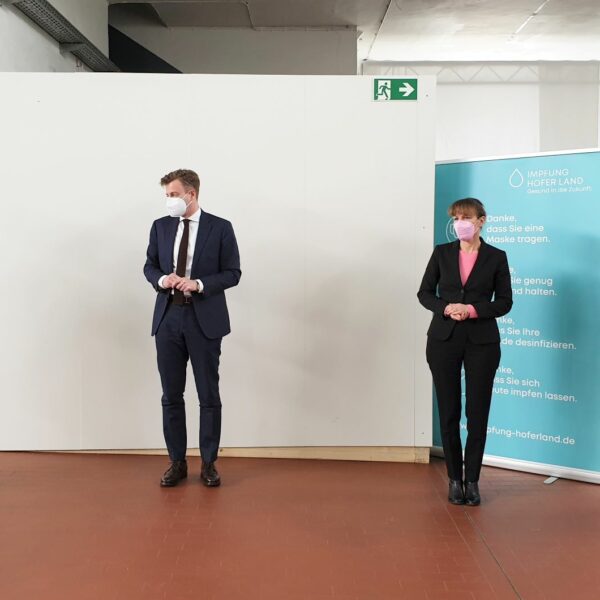 Mitte Januar 2021 nahm das Impfzentrum dann für alle Bürgerinnen und Bürger ab 80 Jahren seinen Betrieb auf. Im März 2021 wurde dort erstmals unter Volllast gearbeitet und das zweite Impfzentrum in Helmbrechts kam hinzu. Auch die niedergelassenen Hausärzte von Stadt und Landkreis Hof wurden in die Impfkampagne eingebunden. Ende April kam Gesundheitsminister Holetschek zum Impfstart der einheimischen Unternehmen ins Hofer Land und Mitte Mai wurde mit 89.000 Impfungen im Hofer Land die Impfquote von 50% überschritten