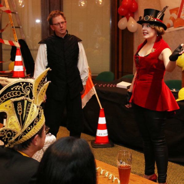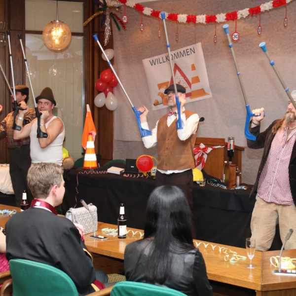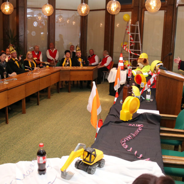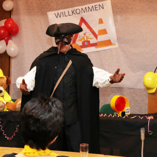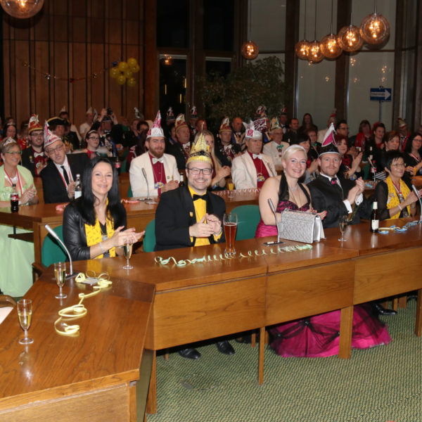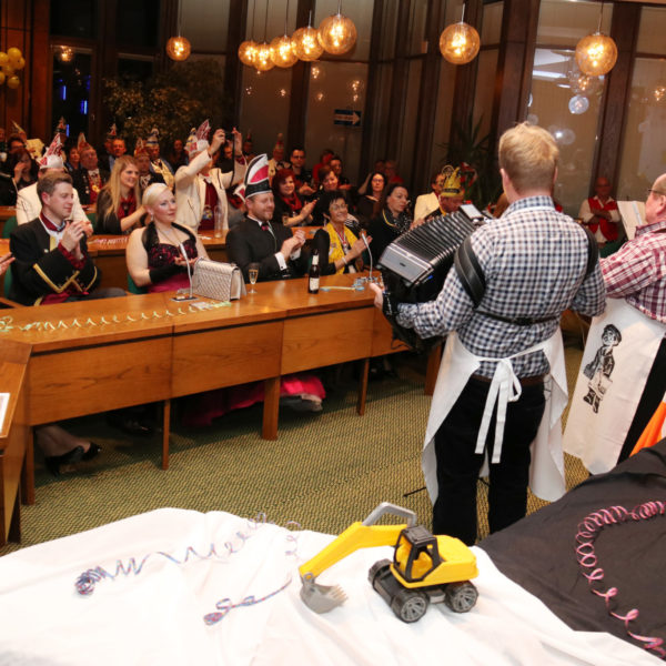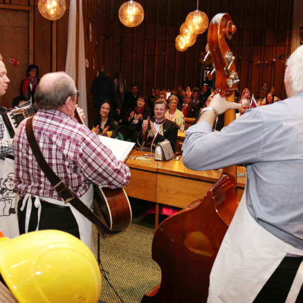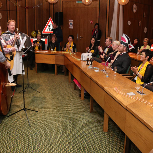 Ein voll belegter Sitzungssaal und ausgelassene, gute Stimmung: Landrat Dr. Oliver Bär hat zum traditionellen Empfang der Karnevalsgesellschaften in das Landratsamt Hof eingeladen. Ein buntes Programm erwartete die Gäste mit viel Musik, Comedy und Satire. Die Fidele Hinterachse sorgte für das musikalische Rahmenprogramm und die Schunkelrunden, die Hofer Wärschtlamänner hatten mit hintergründigen Texten zu Hof und dem Landkreis Hof die Lacher auf ihrer Seite. Bernd Geiser und Tochter Cathrin verarbeiteten als Faust und Mephisto aktuelle politische Themen kabarettistisch und mit beeindruckend scharfer Satire. Maximilian Brünnigs hintergründige lebende Bilder mit Kandidaten aus dem Publikum sorgten ebenfalls für begeisterten Applaus und viel Gelächter. Beim Auftritt des Männerballetts des TV Rehau stand Landrat Dr.Oliver Bär als Tanzpartner im Mittelpunkt.