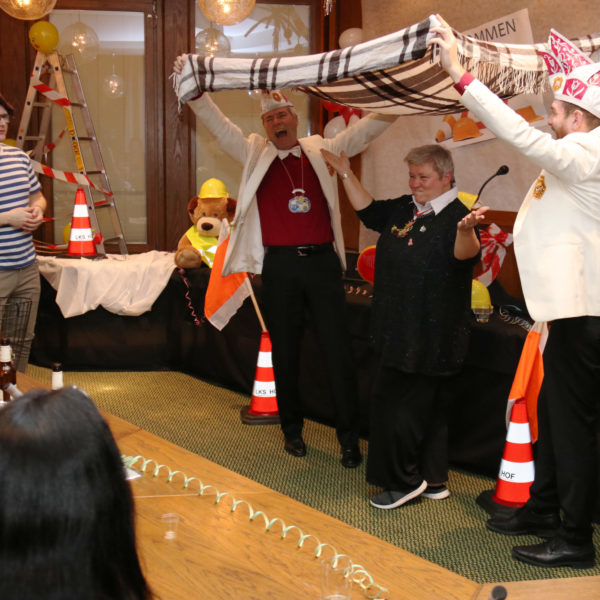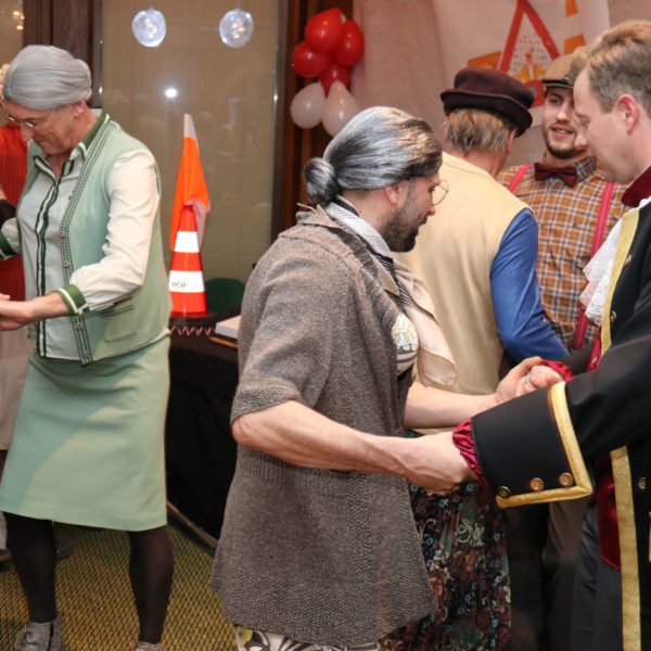 Landrat Dr. Oliver Bär feierte mit den Karnevalsgesellschaften aus Bad Steben, Helmbrechts, Rehau, Schwarzenbach an der Saale, Töpen, Lippertsgrün, der Hofer Narhalla, den Soul City Dancers, der Tanzsportgruppe des TV Münchberg, der Tanzsportgarde FC Ort und den Gästen aus Schirnding fröhlich weiter zur Musik der Fidelen Hinterachse.