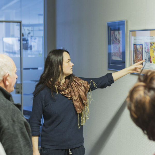 In der Ausstellung im Foyer des 1. Obergeschosses im Landratsamt Hof haben Interessierte die Möglichkeit, zu den regulären Öffnungszeiten die Bildwelten von Mila Satinka zu entdecken.