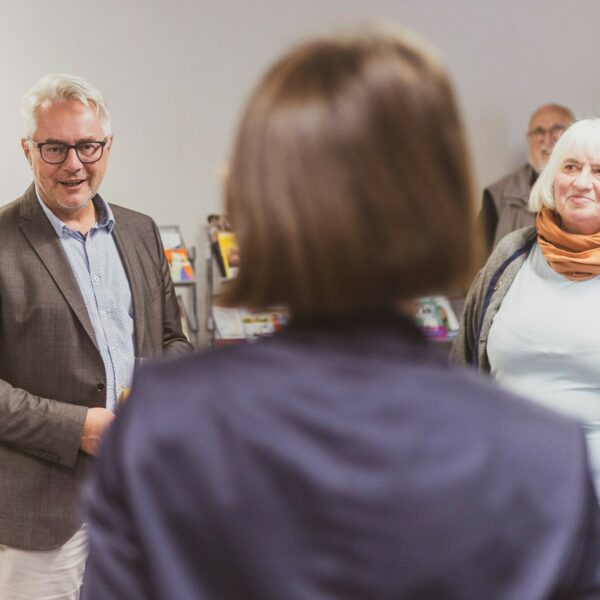 Zur feierlichen Eröffnung begrüßte Geschäftsbereichsleiterin Katrin von Mammen gemeinsam mit dem 1. Bürgermeister der Stadt Helmbrechts, Stefan Pöhlmann, die Künstlerin und die kunstinteressierten Gäste.