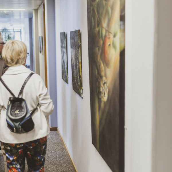 In der kleinen Galerie im Landratsamt Hof hat die Künstlerin Christine Krauß aus Helmbrechts ihre Werke nun erneut für die Öffentlichkeit präsentiert. Bei ihrer letzten Ausstellung im Jahr 2020, hatten weniger Besucher aufgrund der Pandemie die Möglichkeit, die Ausstellung zu besuchen. Jetzt freut sich die Künstlerin umso mehr, dass ihre Bilder wieder ausgestellt und angesehen werden können.
