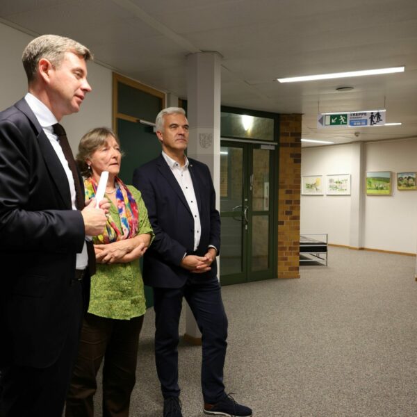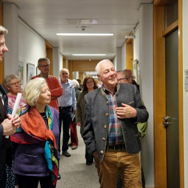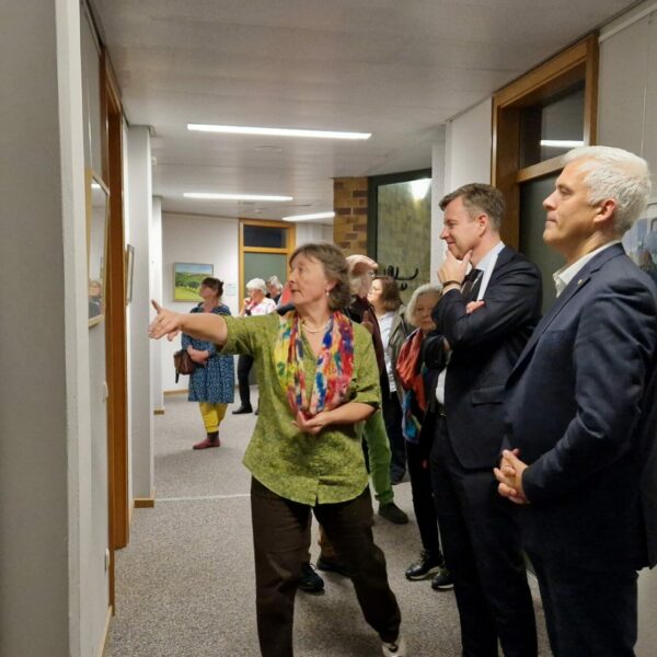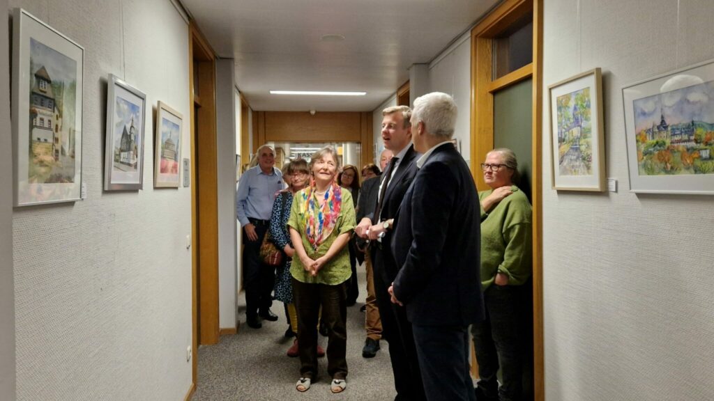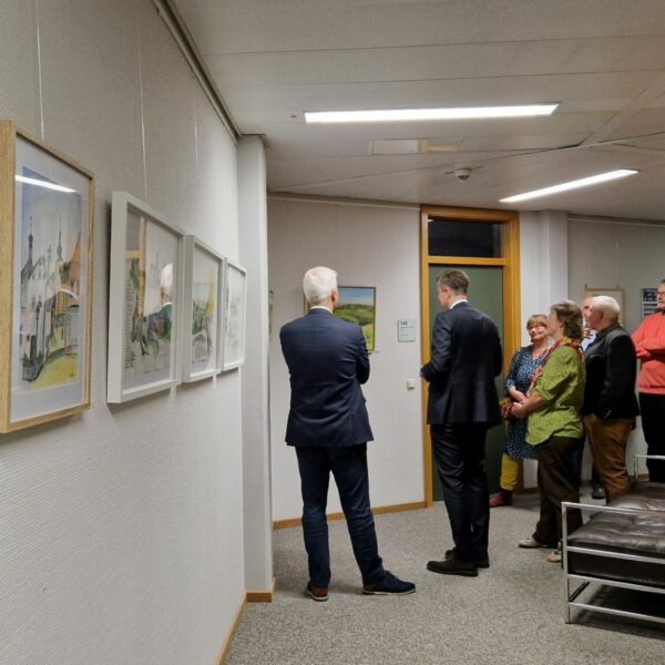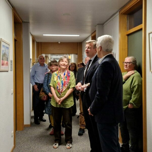 Landrat Dr. Oliver Bär betonte in seiner Begrüßung: „Wir sind in unserem Land gesegnet mit wunderschönen Gegenden. Es lässt sich hier schön leben, schön Urlaub machen, Lebensqualität erfahren. Doch das Bewusstsein für die Schönheit der Gegend könnte noch ausgeprägter sein. Deshalb ist es wertvoll, wenn Motive aus der Region dargestellt werden und damit herausleuchten aus der Region. Damit zeigen Sie als Künstlerinnen und Künstler nicht zuletzt auch die Bedeutung der dargestellten Dinge, wie alter Gebäude oder anderer landschaftsprägender Elemente, deren Erhalt wichtig ist.“