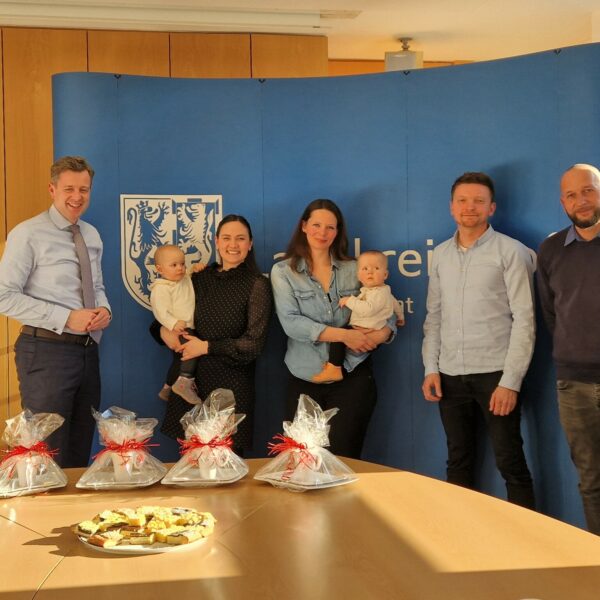 „Ich freue mich über jedes Kind, das im Landkreis geboren wird“, so Landrat Dr. Bär, der die Mütter und Väter zu ihrem Nachwuchs beglückwünschte und für jedes Kind ein persönliches Geschenk überreichte. Insgesamt zehn Babys gibt es dieses Jahr zu feiern. Vier Eltern davon konnten den Termin wahrnehmen.