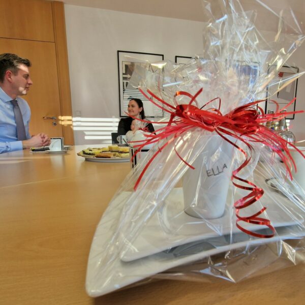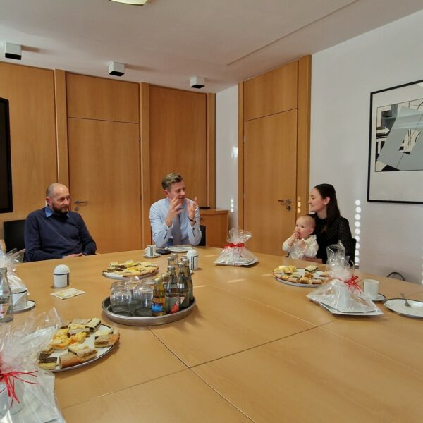 Jedes Jahr lädt Landrat Dr. Oliver Bär die Mitarbeiterinnen und Mitarbeiter des Landratsamtes, die im Verlauf des Jahres Eltern geworden sind, zu einem ungezwungenem Treffen bei Kaffee und Kuchen ins Landratsamt ein. Nach einer Pandemie-bedingten Pause konnte diese Tradition jetzt wieder aufgenommen werden. Eine gute Gelegenheit, um auch während der zum Teil noch andauernden Elternzeit in Kontakt zu bleiben und sich mit anderen jungen Eltern auszutauschen.