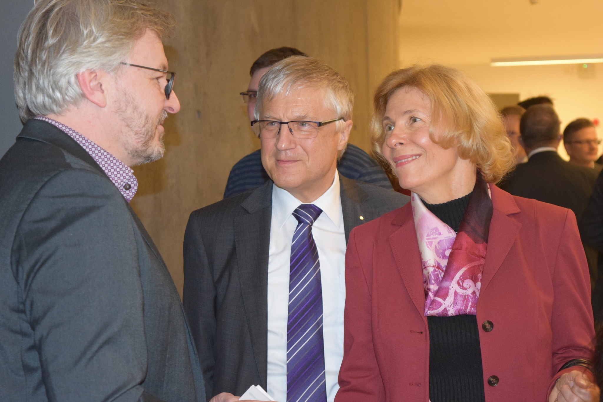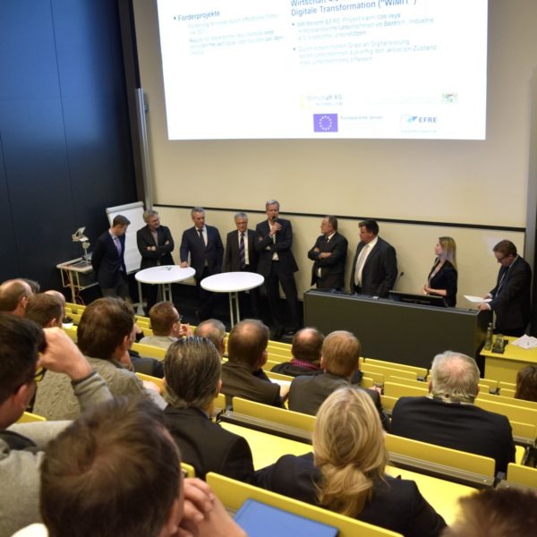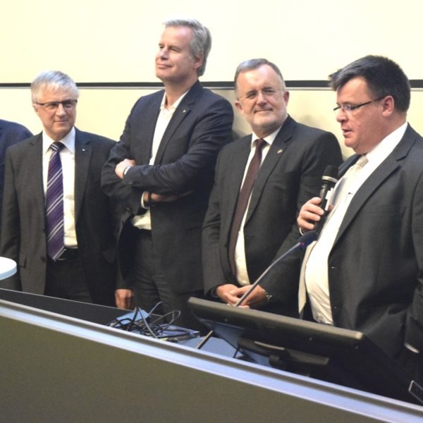 Dr. Christian Heinrich Sandler hob die wesentliche Rolle der Mitarbeiter beim digitalen Wandel hervor: „Wir werden den Wandel Stück für Stück gemeinsam mit unseren Mitarbeitern proaktiv mitgestalten.“ Diese müssten permanent in den Innovationsprozess eingebunden sein. Prof. Dr. Dr. h.c. Jürgen Lehmann sah die Herausforderung für die Hochschulen darin, zukünftig interdisziplinär zu arbeiten. „Der Ingenieur der Zukunft muss auch etwas von Informatik und Wirtschaft verstehen wie auch umgekehrt der Informatiker etwas von Technik und Wirtschaft “, so der Hochschulpräsident.