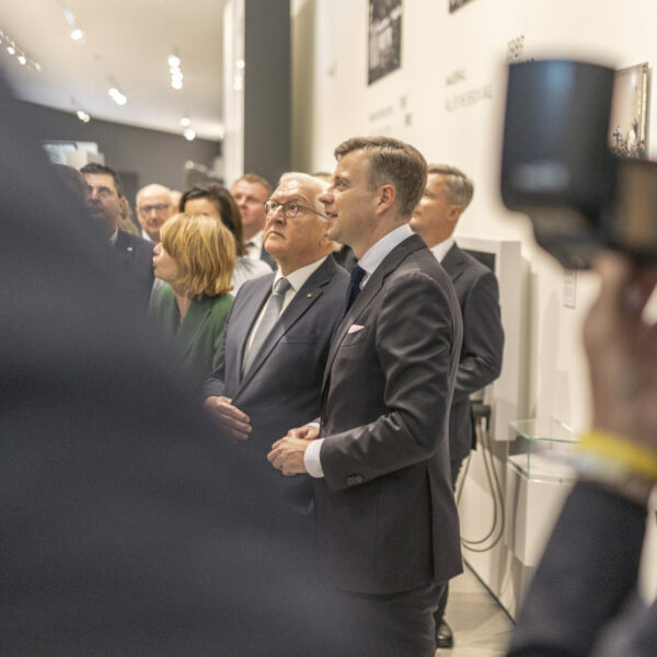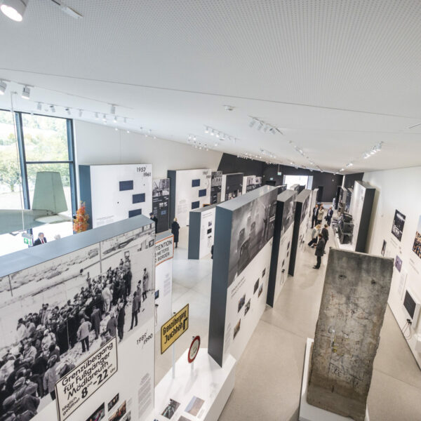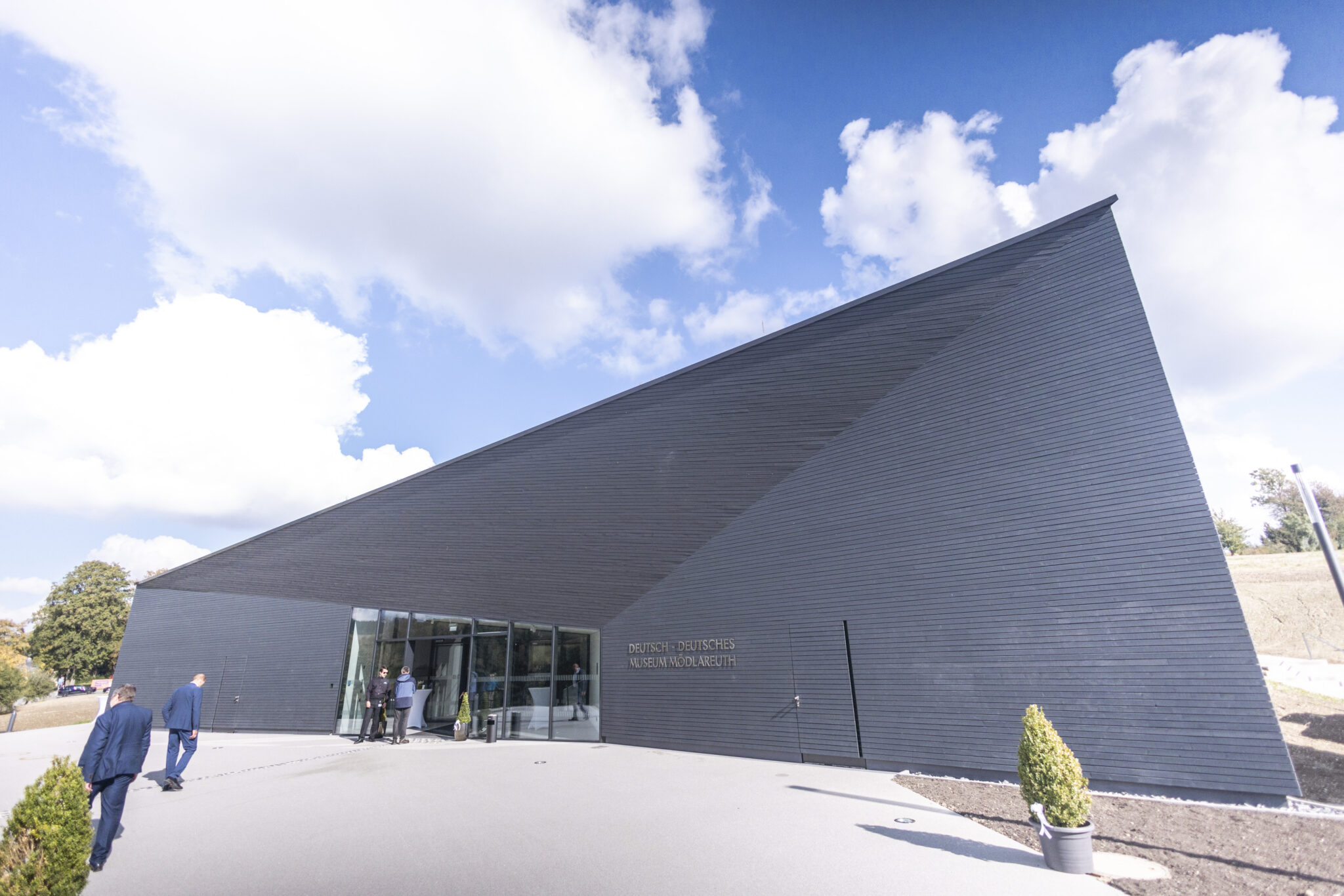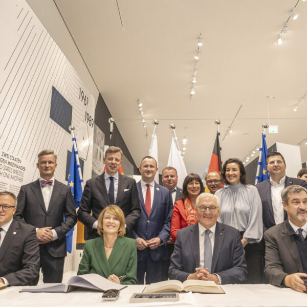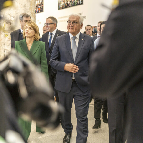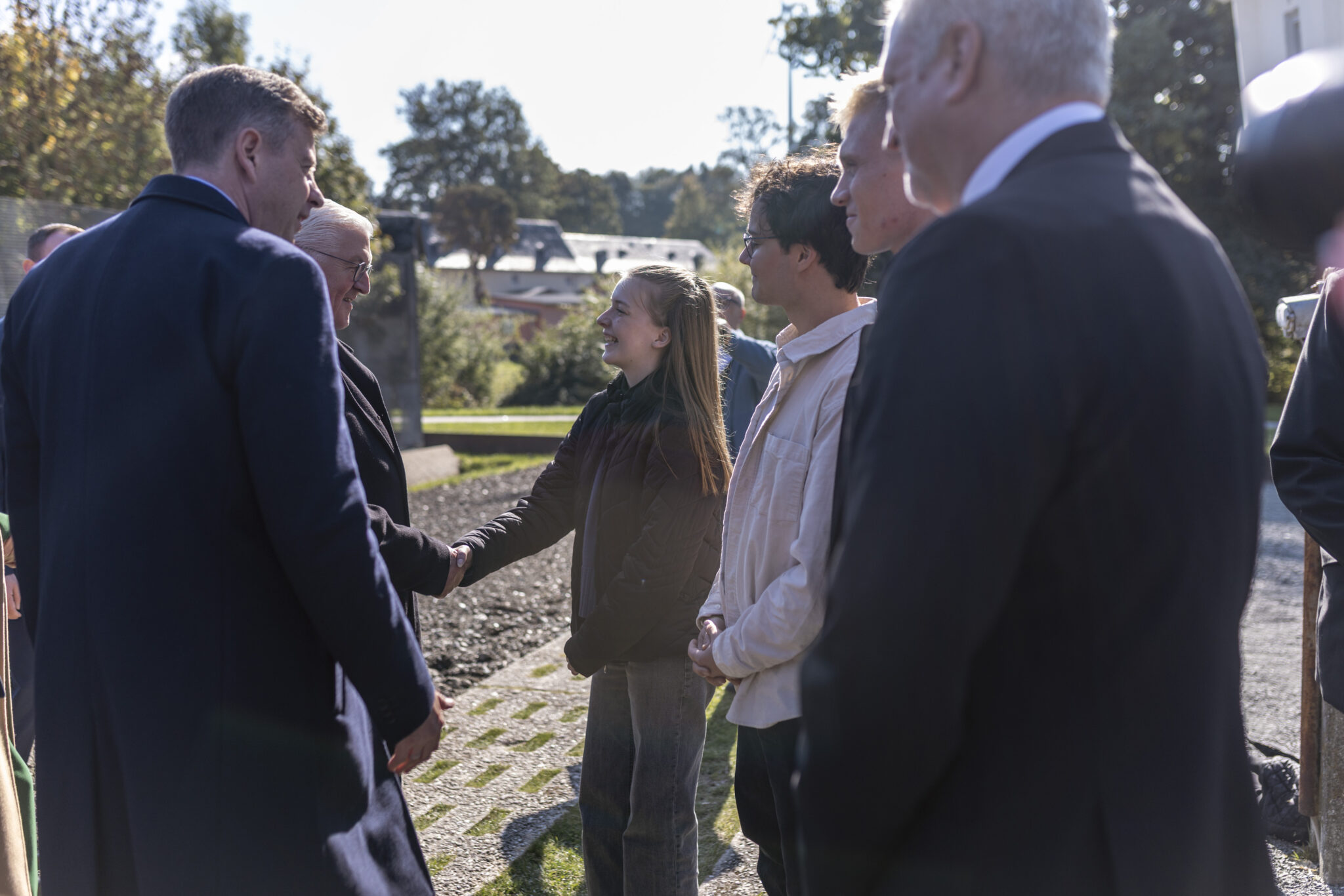 In Anwesenheit von Bundespräsident Dr. Frank-Walter Steinmeier, seiner Frau Elke Büdenbender, der Ministerpräsidenten von Bayern und Thüringen, Dr. Markus Söder und Prof. Dr. Mario Voigt, sowie von Bundesforschungsministerin Dorothee Bär wurde am gestrigen 2. Oktober der Neubau sowie das neugestaltete Freigelände des Deutsch-Deutschen Museums unter großem Medieninteresse feierlich eingeweiht. Nach dem gemeinsamen Rundgang durch die neue Dauerausstellung und Gesprächen mit Zeitzeugen und Schülern auf dem Freigelände an der früheren innerdeutschen Grenze ging es zum feierlichen Festakt mit rund 500 geladenen Gästen. Die offizielle Eröffnung und Inbetriebnahme des neuen Gebäudes für die Öffentlichkeit wird am 9. November im Beisein des Beauftragten der Bundesregierung für Kultur und Medien, Wolfram Weimer, erfolgen.