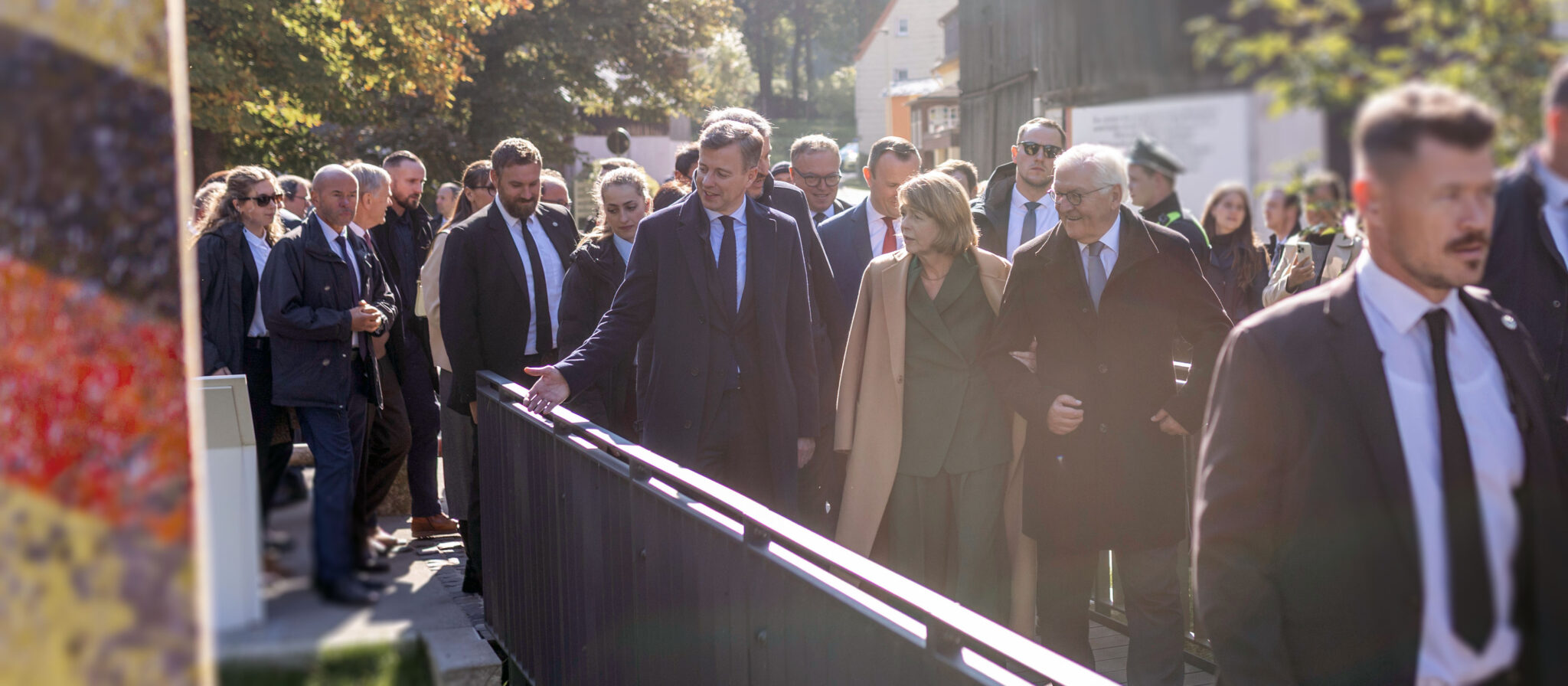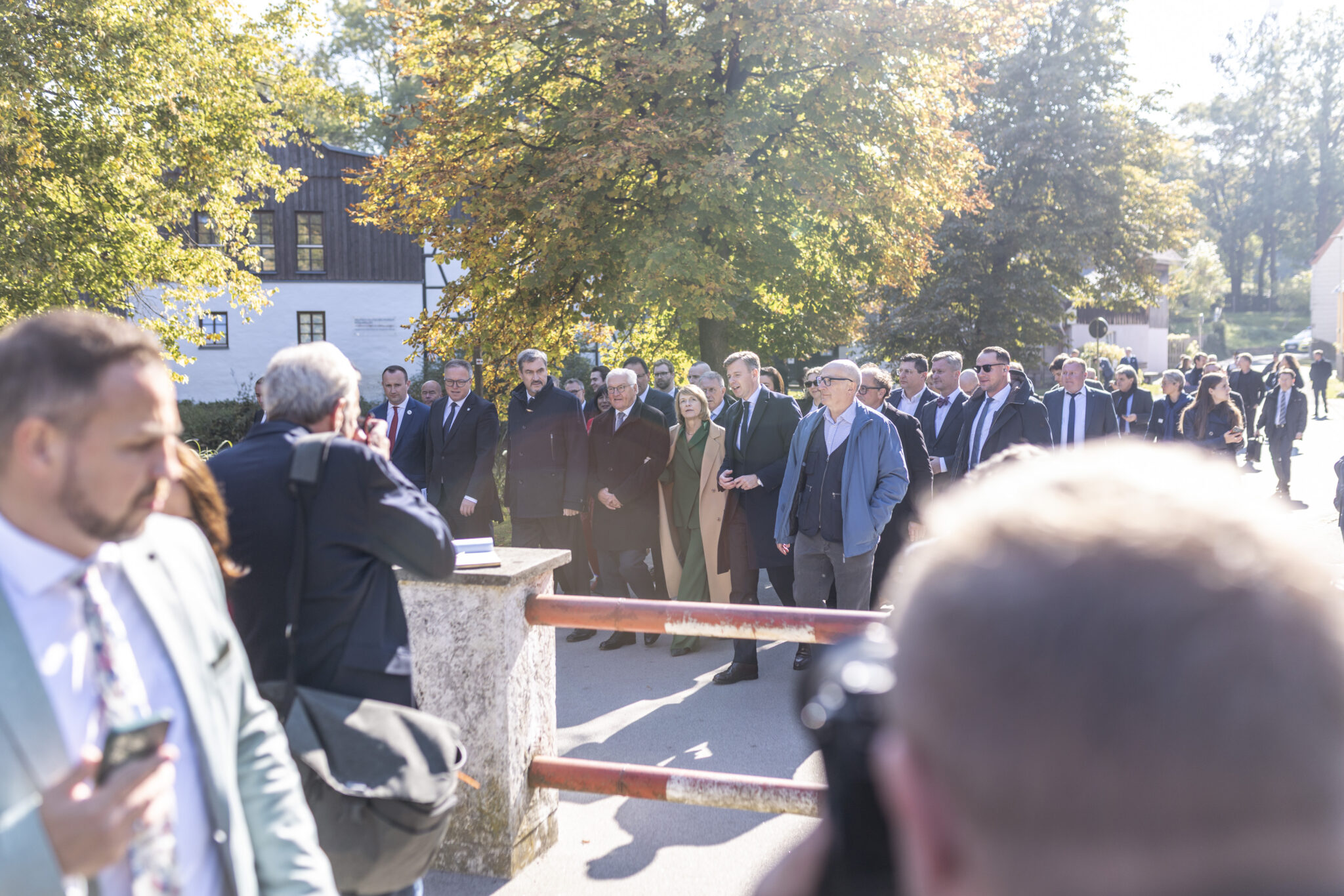 Es war besonderer Tag und eine große Ehre für das kleine Dorf Mödlareuth wie für die gesamte Region: Bundespräsident Frank-Walter Steinmeier mit seiner Gattin Elke Büdenbender, Bayerns Ministerpräsident Dr. Markus Söder, Thüringens Ministerpräsident und Bundesforschungsministerin Dorothee Bär kamen am gestrigen 2. Oktober 2025 eigens zur Einweihung des Erweiterungsneubaus des Deutsch-Deutschen Museums Mödlareuth an die bayerisch-thüringischen Grenze.