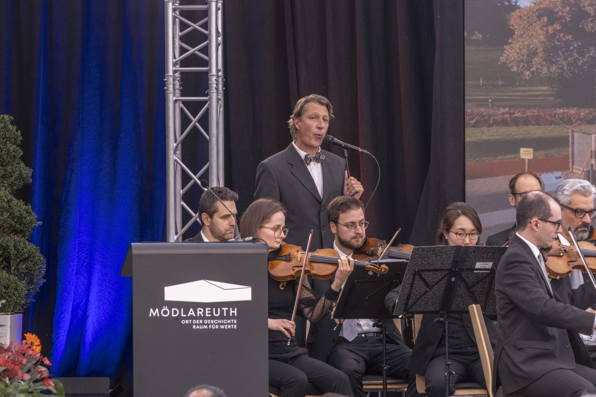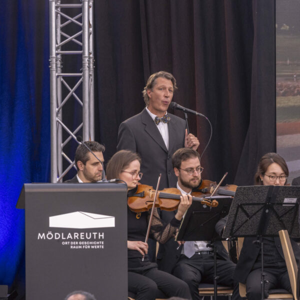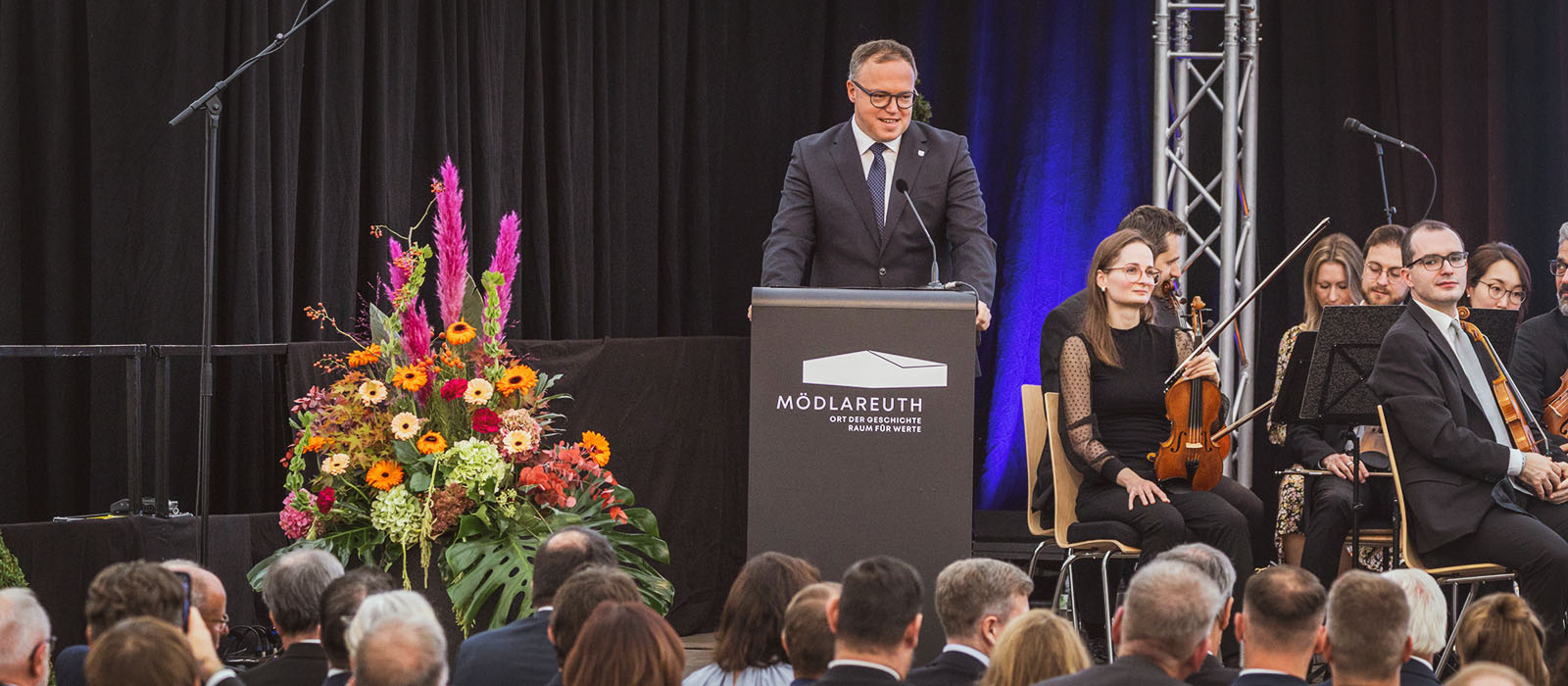 Der Vorsitzende des Museums-Zweckverbandes, Landrat Dr. Oliver Bär, begrüßte die Ehrengäste sowie die regionalen und überregionalen Unterstützer des Museums und des Erweiterungsprojektes, denen er herzlich dankte: „Dieses Museum zu erstellen, war ein Gemeinschaftsakt. Viele Räder mussten ineinandergreifen.“ Die Museumserweiterung wurde mit Unterstützung des Bundes, der Freistaaten Bayern und Thüringen, der Oberfrankenstiftung sowie der Bayerischen Landesstiftung umgesetzt. Der Landrat erinnerte auch an die Ursprünge und die Begründer des Museums: „Es war wohl eine der größten Leistungen der Mödlareutherinnen und Mödlareuther, dass sie nach Jahrzehnte der Unfreiheit, der Trennung sogar von Brüdern, beschlossen haben, ein Stück der Mauer für die Zukunft stehen zu lassen. Am Anfang und am Ende steht eines: Die Bürgerinnen und Bürger von Mödlareuth. Dorf ist Museum, Museum ist Dorf – das ist einzigartig. Ohne Sie wäre es nicht denkbar gewesen, diesen Ort weiter zu entwickeln.“