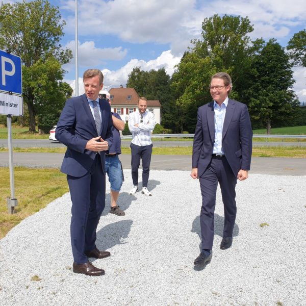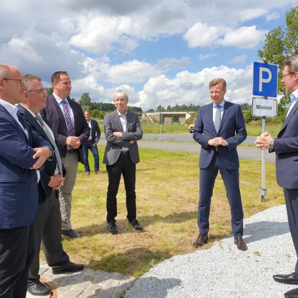 Im Rahmen eines Vor-Ort-Termins mit Bundesverkehrsminister Andreas Scheuer wurde der Lückenschluss der Bundesstraße 289 in Münchberg nach rund zwei Jahren Bauzeit heute offiziell eingeweiht. Die B 289, eine für ganz Oberfranken wichtige Ost-West-Verbindung zwischen Rehau und Kulmbach, wird damit nun komplett an der Stadt Münchberg vorbeigeleitet. Ab 2023 soll darüber hinaus eine neue Autobahnausfahrt gebaut werden, die die B 289 an die A 9 anbindet und den Ortsteil Straas entlastet. Im Zuge der Baumaßnahme wurde zudem ein Radweg entlang der Bundesstraße geschaffen, der bald bis nach Poppenreuth weitergeführt werden soll.