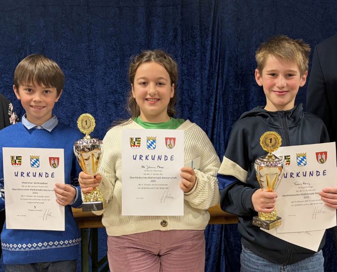 Kürzlich fand an der Grundschule Moschendorf die zweite Runde der Oberfränkischen Mathematik-Meisterschaft 2025 statt. 32 Schülerinnen und Schüler der vierten Klassen aus 16 Grundschulen im Landkreis und in der Stadt Hof nahmen daran teil. Sie alle hatten zuvor die erste Runde des Wettbewerbs an ihrer Schule gewonnen. Beste Teilnehmerin der zweiten Runde in Moschendorf war Ida Johanna Mauer von der Evangelischen Schule Naila. Bei den Jungs war Frederik Hornig von der Grundschule Hof-Krötenbruck der Beste. Dazu qualifizierte sich Maximilian Wittenzellner, ebenfalls von der Evangelischen Schule Naila, mit der zweithöchsten Punktzahl für den nächsten Durchgang. Die dritte Runde auf Bezirksebene findet am 16. Dezember 2025 in der Grundschule Thurnau statt. Für jedes der teilnehmenden Kinder bei dem Durchgang in Moschendorf gab es eine Urkunde und einen Preis. Die beiden Sieger erhielten einen Pokal, die jeweils Zweit – und Drittplatzierten Sonderpreise. Gesponsert […]