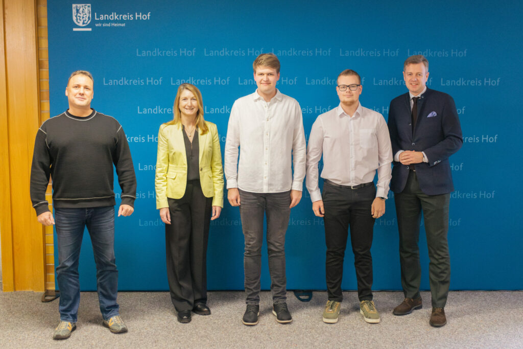 Nach zwei Jahren intensiver Ausbildung verstärken nun zwei Beamte der Qualifikationsebene 2 den Landkreis Hof. Landrat Dr. Oliver Bär sowie der stellv. Ausbildungsleiter Matthias Krüger und Personalleiterin Daniela Schreiner übergaben die Zeugnisse über die erfolgreich bestandene Qualifikationsprüfung. Die beiden Nachwuchskräfte Kai Schödel und Paul Hertrich werden künftig in den Bereichen Personal sowie IT/Digitalisierung eingesetzt und unterstützen dort wichtige Aufgaben für die Bürgerinnen und Bürger im Landkreis Hof. Wir wünschen viel Erfolg auf ihrem weiteren Weg im öffentlichen Dienst.
