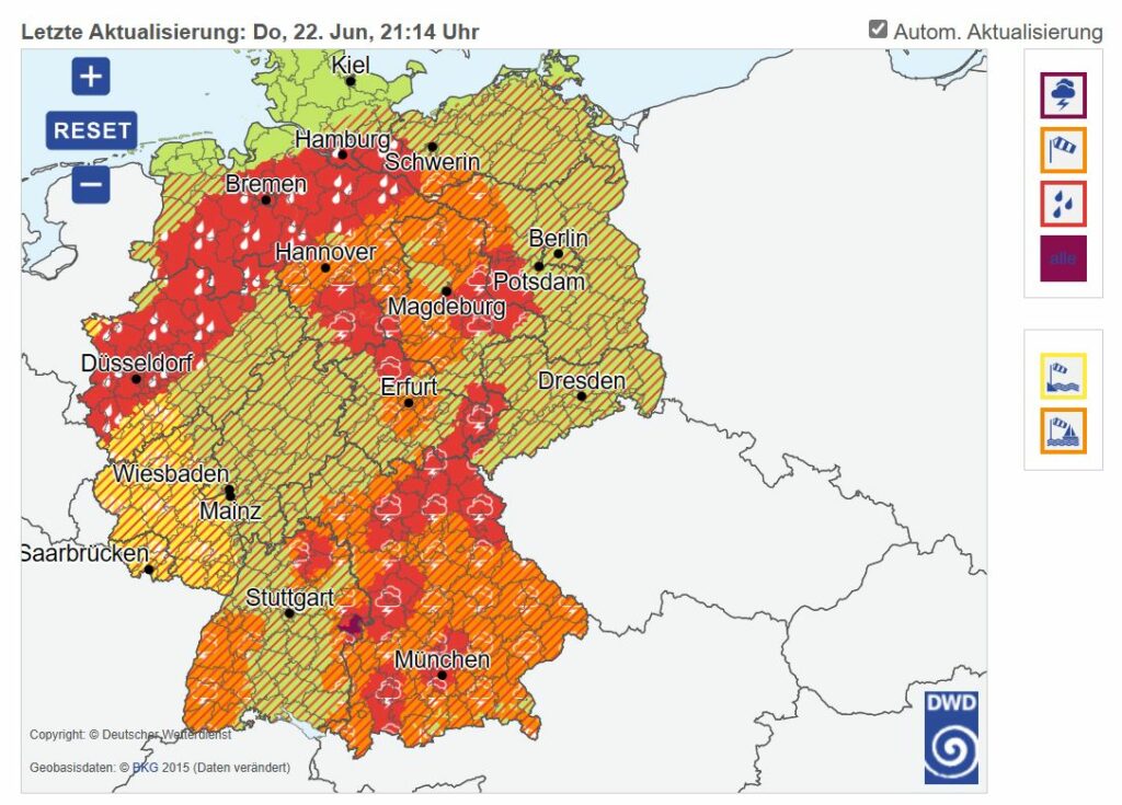 Amtliche Unwetterwarnung Nacht vom 22. auf 23.06.2023