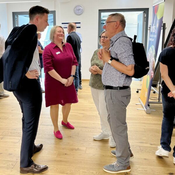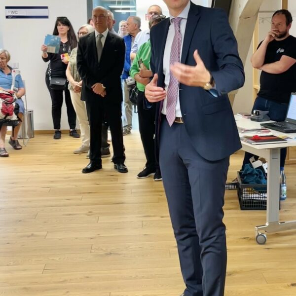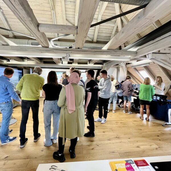 Während das Team von Smart City Einblicke in die Entwicklung des Digitalen Zwillings gab, bot die Volkshochschule mit einem Smartphone-Stammtisch Soforthilfe bei technischen Problemen an. Besucher konnten außerdem mit konkreten Fragen oder Problemen auf die Experten zugehen.