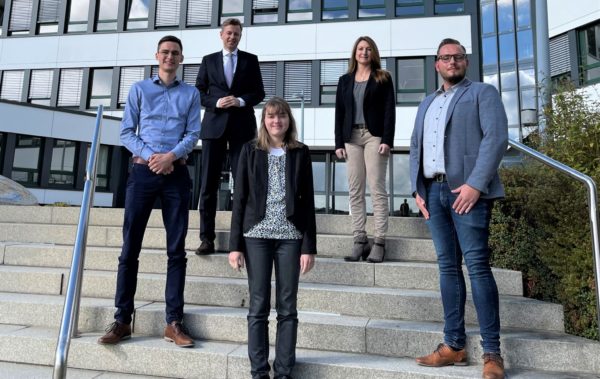Bild (v.l.): Jonas Ludwig, Landrat Dr. Oliver Bär, Katrin Fischer, Daniela Schreiner (Personalleiterin), Yannick Strößner