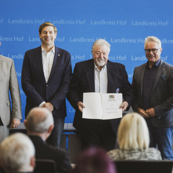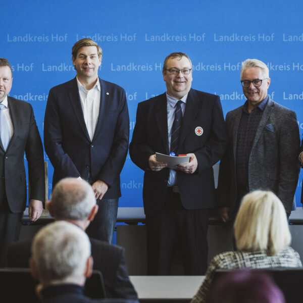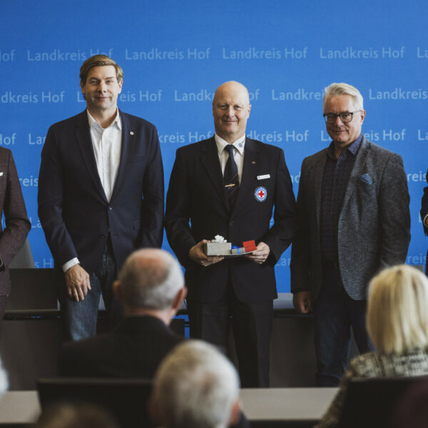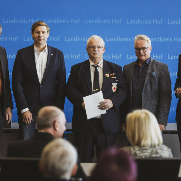 Darüber hinaus überreichte Dr. Oliver Bär das Große Ehrenzeichen für eine 50-jährige Dienstzeit beim Bayerischen Roten Kreuz und THW an Hartmut Ring (Geroldsgrün), Sonja Baumgarten (Rehau), Hanns Benker (Schwarzenbach a.Wald), Burkhard Hauenstein (Regnitzlosau), Kurt Heidenreich (Schwarzenbach a.d.S.), Waldemar Rittweg (Naila), Monika Vogt (Schwarzenbach a.d.S.), Hans Wolfrum (Selbitz).