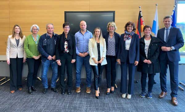 Bild (v.l.): Daniela Schreiner (Leiterin Fachbereich Personal), Personalratsvorsitzende Gabriele Roth, Jürgen Witter, Beate Mertens, Oliver Döbereiner, Daniela Sack, Regina Saller, Sandra Leucht, Ulla Kemnitzer, Landrat Dr. Oliver Bär