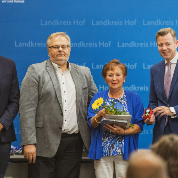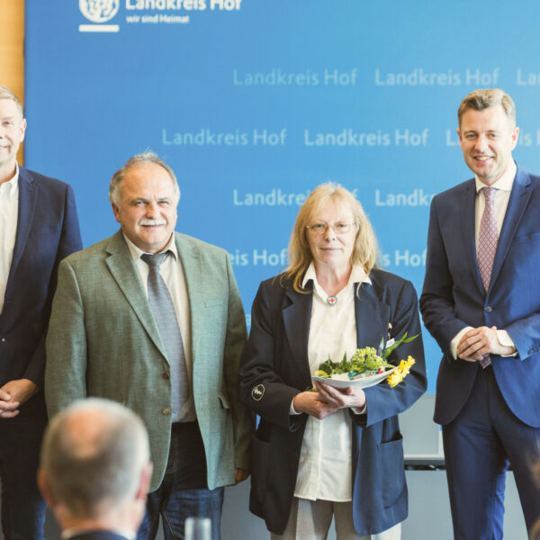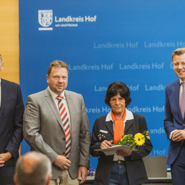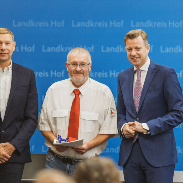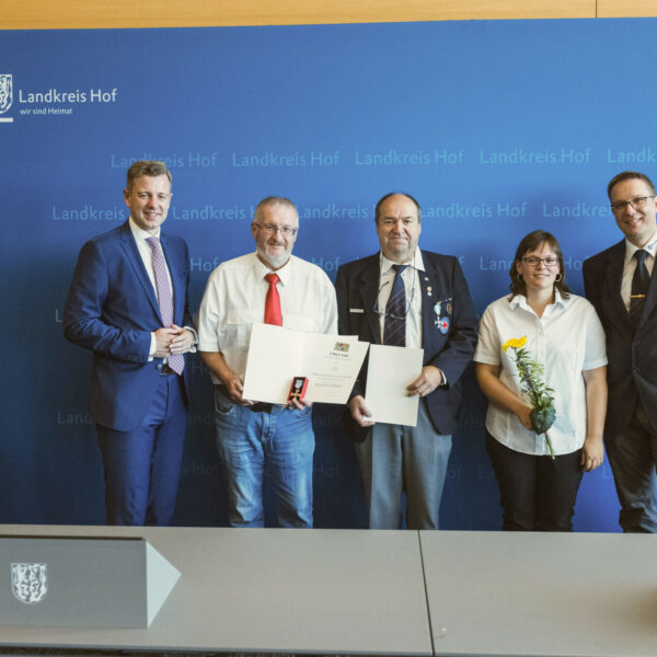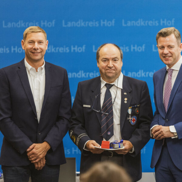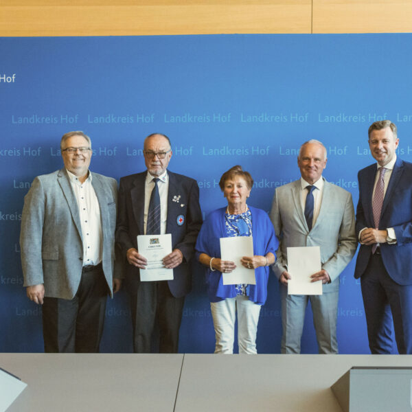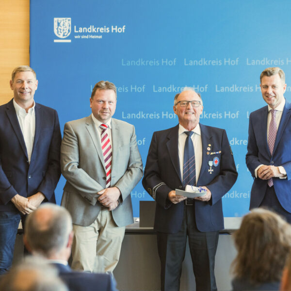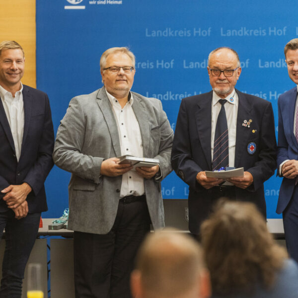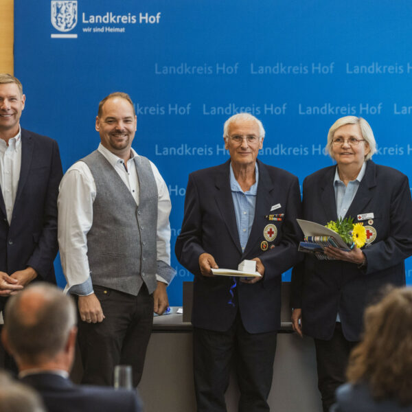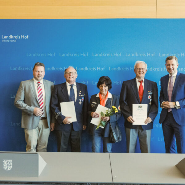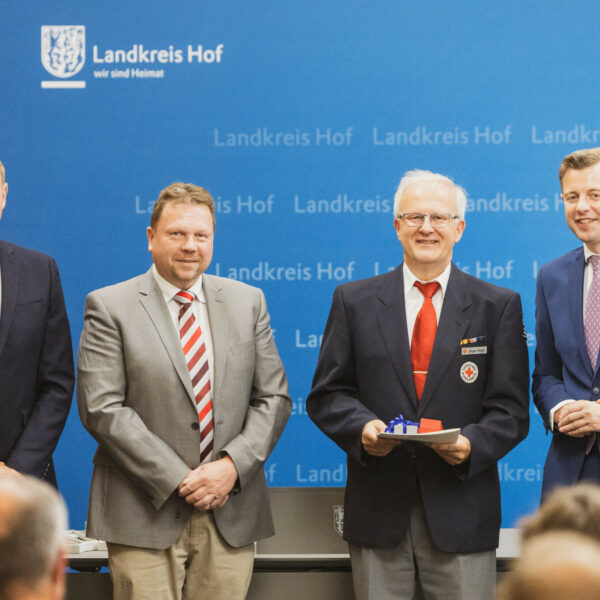 Landrat Dr. Oliver Bär hat jetzt 16 langjährige Mitarbeiter und Mitarbeiterinnen des Bayerischen Roten Kreuzes aus acht Städten und Gemeinden im Hofer Land ausgezeichnet. Im Sitzungssaal des Landratsamtes überreichte er auch im Namen des Staatsministers Joachim Herrmann Urkunden und dankte den ehrenamtlichen Mitarbeitern aus dem Hofer Land für ihr vorbildliches Engagement.
