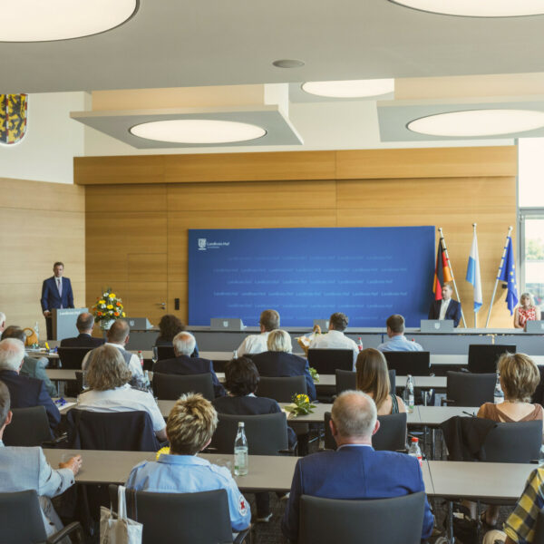 Landrat Dr. Oliver Bär betont: „Wir feiern heute nicht nur die Organisation, sondern Sie. Dass Sie 365 Tage im Jahr helfen, wenn es darum geht Leben zu retten und zu unterstützen. Wir alle brauchen und schätzen Sie und das Ehrenamt.“