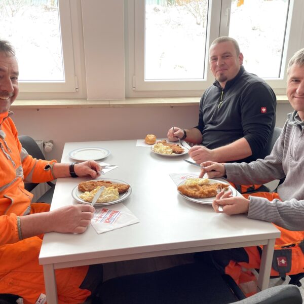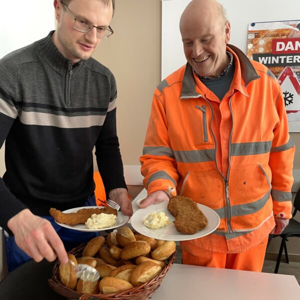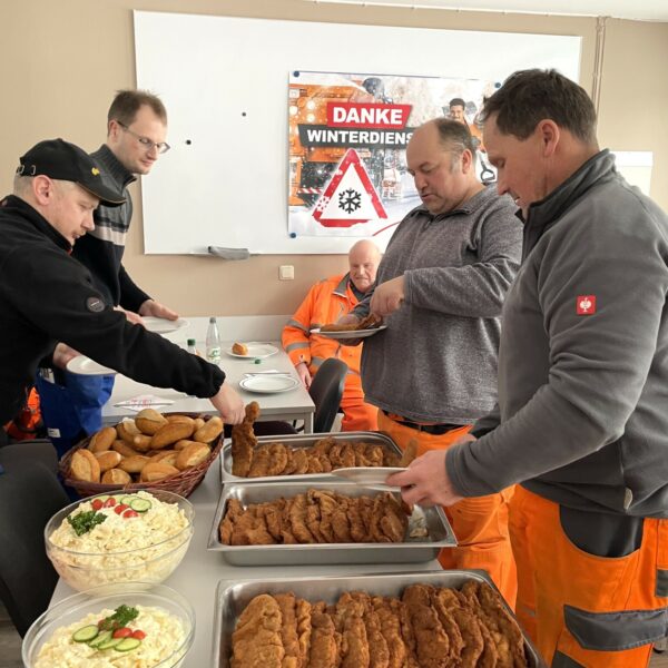 „Das ist eine große Wertschätzung“, freut sich Jürgen Wälzel. Er ist Leiter des Fachbereichs Tiefbau im Landkreis Hof und wurde heute, gemeinsam mit seinen rund 35 Winterdienst-Mitarbeitern, nicht nur mit einem herzlichen Dankeschön sondern auch mit Schnitzel und Kartoffelsalat für seinen Einsatz belohnt.