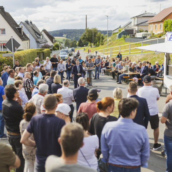 Mit einem kleinen Straßenfest hat die Gemeinde Stammbach gemeinsam mit dem Landkreis Hof den neu gestalteten Abschnitt der Kreisstraße HO 20 zwischen Stammbach und Metzlesdorf eingeweiht.