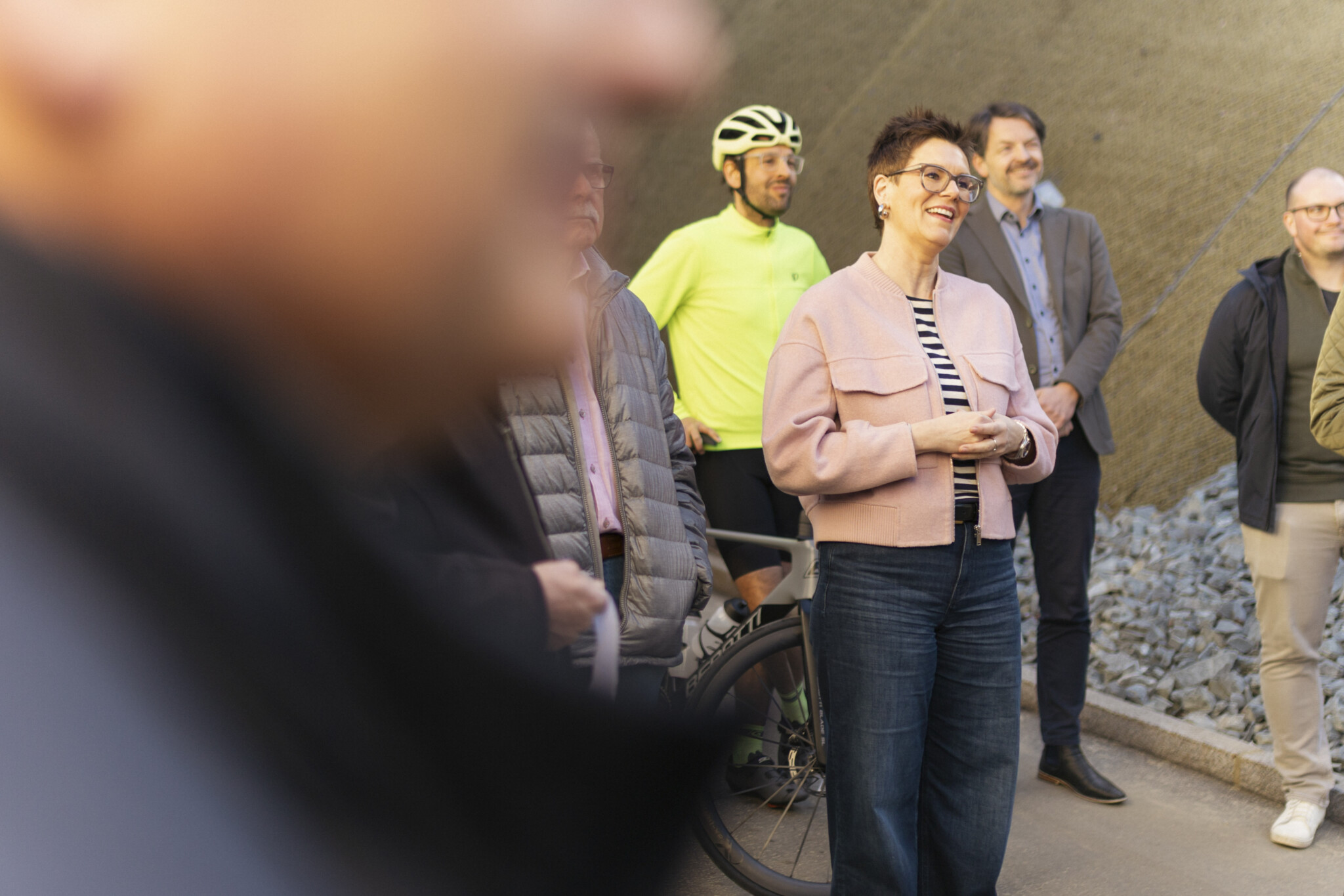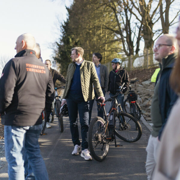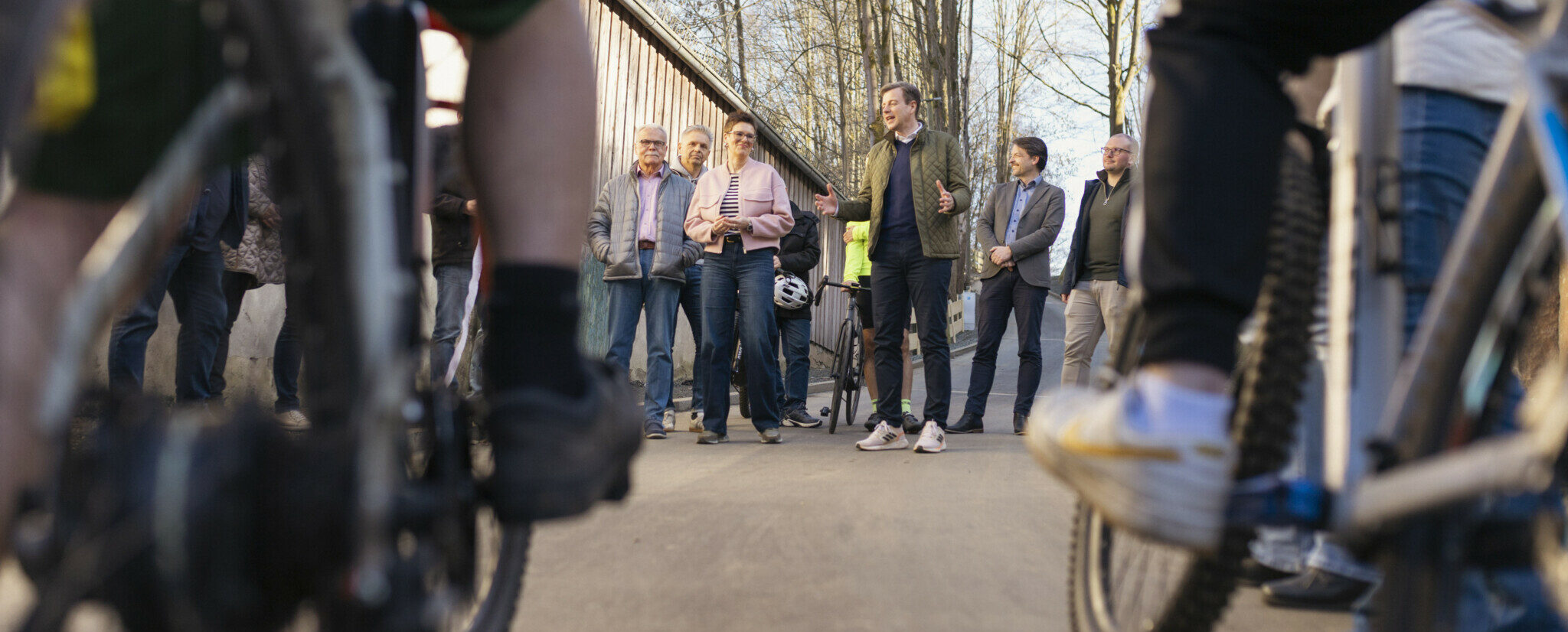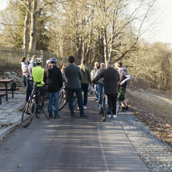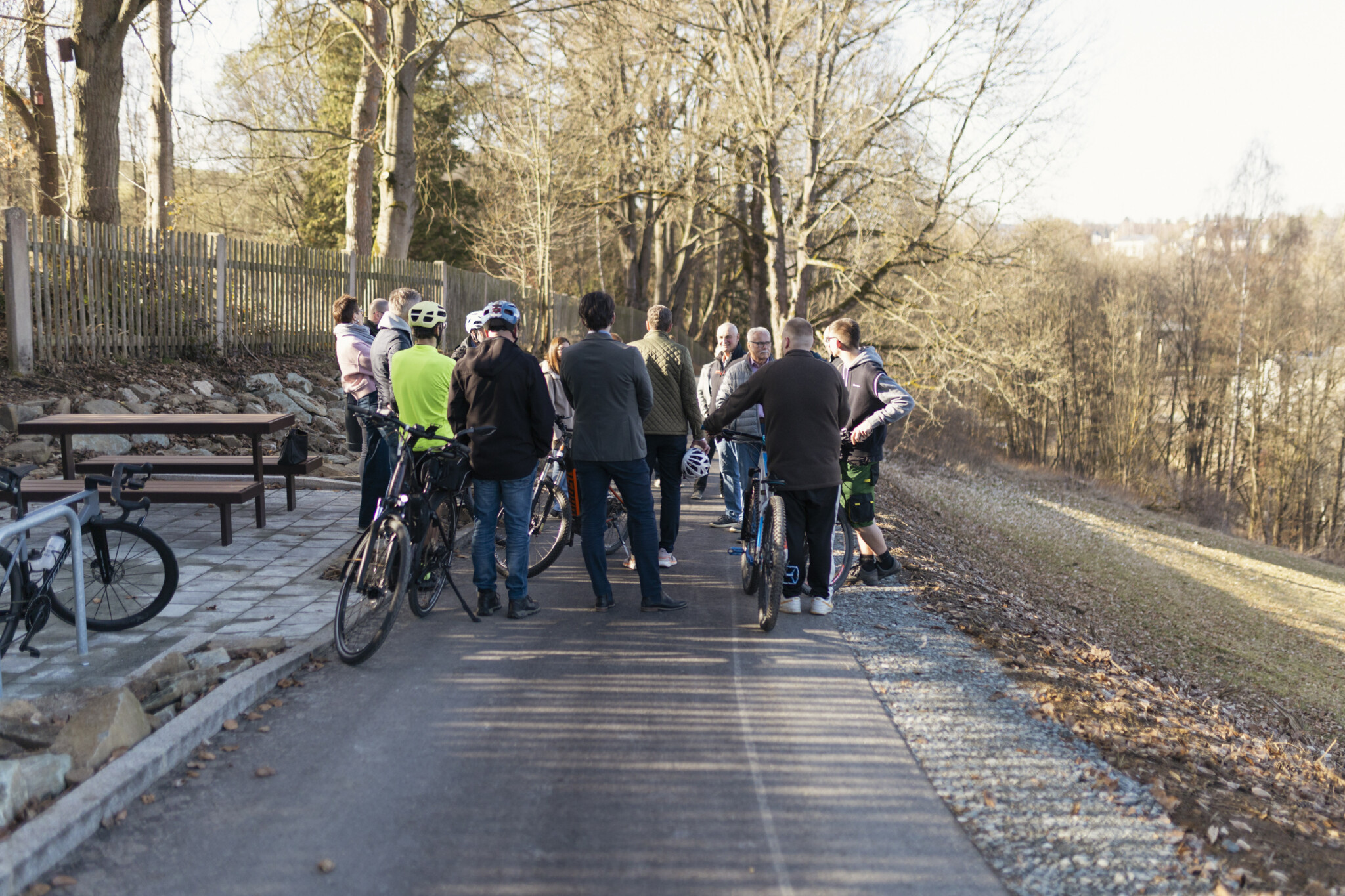 Jürgen Wälzel, Leiter der Tiefbauverwaltung des Landkreises Hof, erklärte: „Ja, wir freuen uns, dass wir hier jetzt ein Stück vom Flüsseradweg einweihen können, das zugleich auch Saaleradweg ist. Es ist ein richtig schönes Stück hier mit tollem Ausblick Richtung Hirschberg. Natürlich auch nicht ganz ohne mit dem steilen Berg, da muss man schön vorsichtig fahren. Wir haben es jetzt so hergerichtet, dass jeder ordentlich fahren kann. Wir freuen uns, dass wir ein weiteres Stück jetzt einweihen können. Wieder ein Puzzlestück vom Flüsseradweg-Projekt. Und wir wollen auch weiter dranbleiben und weitere Stücke ausbauen.“ Er fügte hinzu: „Wir haben für diese Maßnahmen natürlich auch Ausgleichsmaßnahmen gebraucht. Da wurden insgesamt 2.000 Bäume gepflanzt hier ganz in der Nähe am Hang an der Saale.“