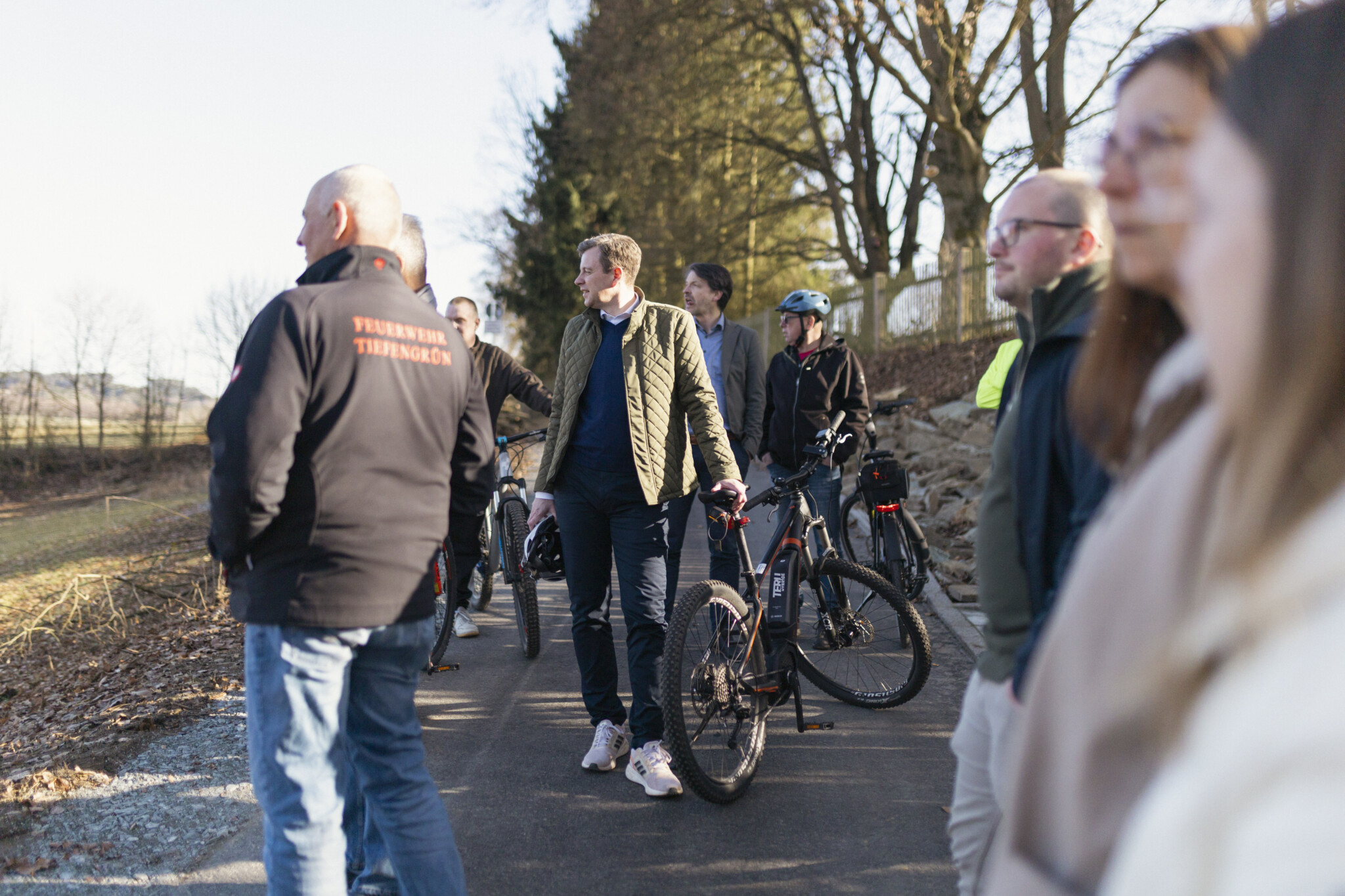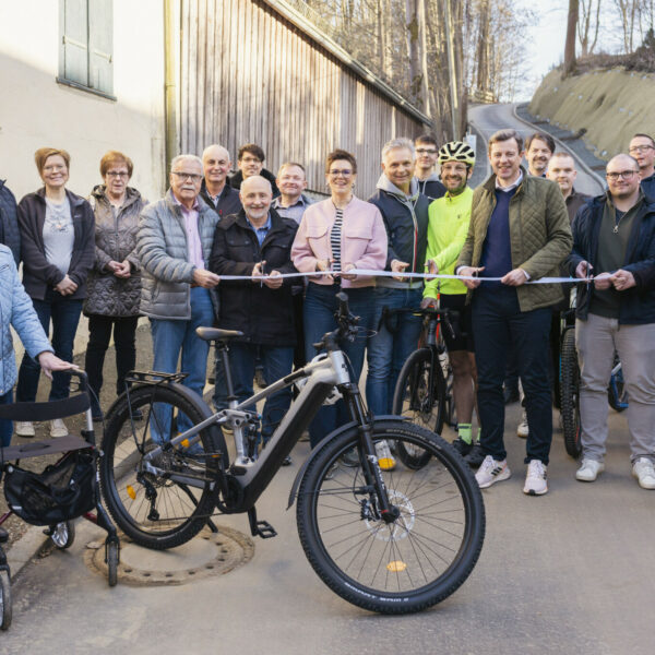 Auf dem Gebiet der Gemeinde Berg in Untertiefengrün wurden am Freitag die Teilabschnitte 111 und 112 des Flüsseradwegs Main-Saale-Elster von Landrat Dr. Oliver Bär und Bergs Bürgermeisterin Patricia Rubner gemeinsam mit zahlreichen Gästen aus der Umgebung, dem Kreistag und von den beteiligten Firmen eingeweiht. Der neu ausgebaute Radweg mit einer Länge von insgesamt 360 Metern verläuft durch offene Wald- und Wiesenflächen am östlichen Ostrand von Untertiefengrün, vom Anschluss an den asphaltierten Weg „Alm“ bis zur Untertiefgrüner Straße (St. 2198) im Ortszentrum, die nach Hirschberg führt. Durch ihre Hanglage hält die Trasse ein Gefälle bereit, das entsprechend befestigt wurde, bietet aber auch attraktive Ausblicke auf das nahe Saaletal.