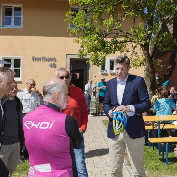 So konnte die nun als Radweg ertüchtigte Gesamtstrecke im Rahmen einer feierlichen Einweihung gemeinsam befahren werden. Vom Feuerwehrhaus in Gundlitz ging es auf der Gesamtlänge von 6,5 Kilometern – davon 3,5 Kilometer neu ausgebaut – nach Förstenreuth, wo im Dorfhaus gebührend gefeiert wurde.