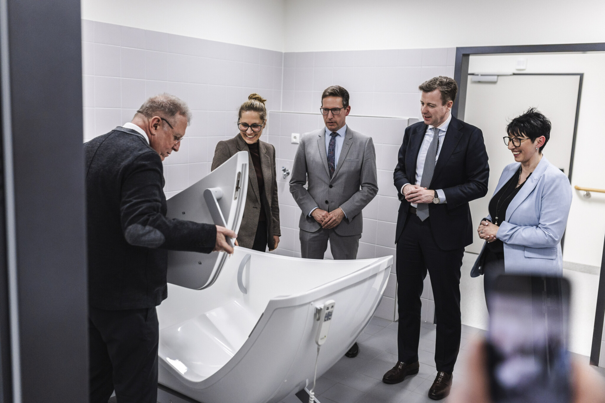 Bei der Eröffnung dankte Bezirkstagspräsident Henry Schramm allen Beteiligten des Bezirks Oberfranken, der GeBO (Gesundheitseinrichtungen des Bezirks Oberfranken), dem Landkreis Hof und der Stadt Rehau, betonte die gute Zusammenarbeit und die gemeinsame Freude über dieses Projekt.