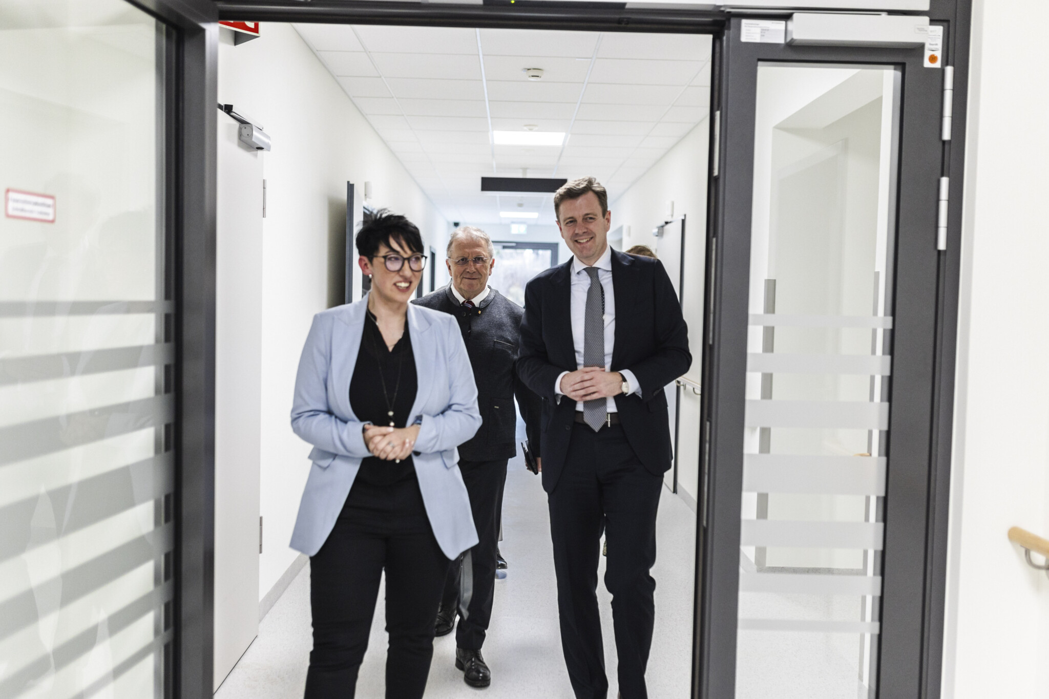 Nach einer 15-monatigen Bauzeit wurde der langersehnte Interimsbau fertiggestellt und feierlich eröffnet. Das neue Gebäude soll eine Übergangslösung für den Klinikneubau werden, der voraussichtlich 2030 beginnt. Zwei Stationen werden in den nächsten Wochen in den Interimsbau einziehen. Die dadurch leerwerdenden Bereiche im Hauptgebäude, sollen schließlich auch renoviert und modernisiert werden. Auch Landrat Dr. Oliver Bär freute sich über den Übergangsbau und betonte, wie wichtig eine positive Umgebung ist, die dazu beitragen kann, dass die hier behandelten Menschen möglichst schnell genesen.