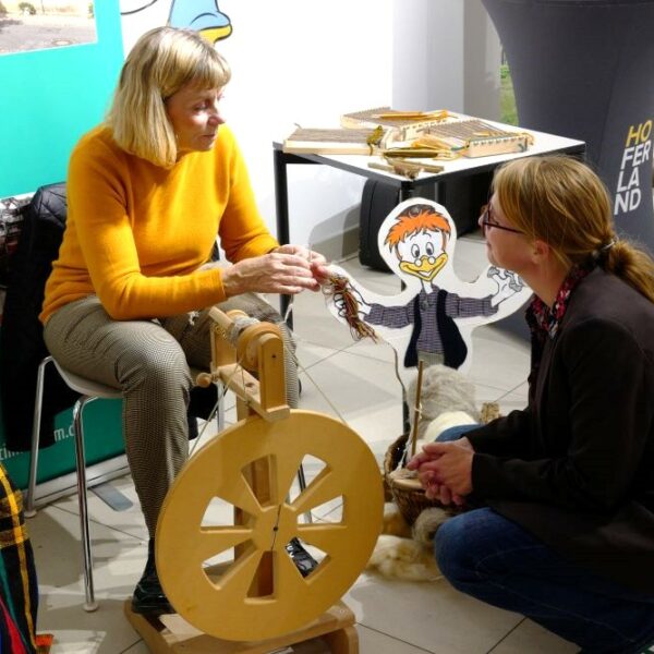 Groß und Klein konnten die Vielfalt der regionalen Museumslandschaft entdecken, Vorträgen lauschen und sich bei praktischen Workshops selbst ausprobieren. So durften die Besucher beispielsweise einen Webstuhl bedienen, Bienenwachskerzen basteln, mit einem Gänsekiel schreiben oder beim Entenquiz ihr Wissen unter Beweis stellen. Bei Vorführungen gab es historische Praktiken zu erleben, wenn zum Beispiel Museumsleiter Bertram Popp aus Kleinlosnitz zeigte, wie das harzreiche Holz Kienspan als Lichtquelle genutzt wurde. An den Infoständen hatten Interessierte zudem die Möglichkeit, sich direkt mit den Mitarbeiterinnen und Mitarbeitern der Museen auszutauschen. Auch für musikalische Unterhaltung und das leibliche Wohl war bestens gesorgt.