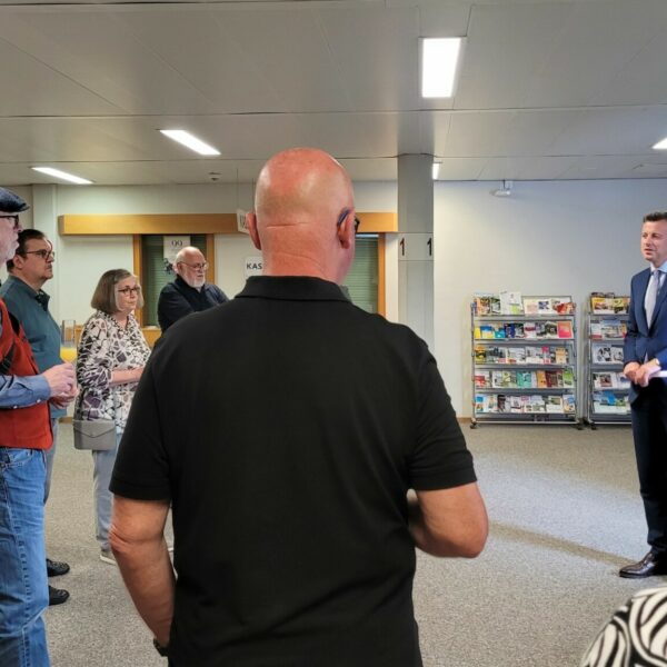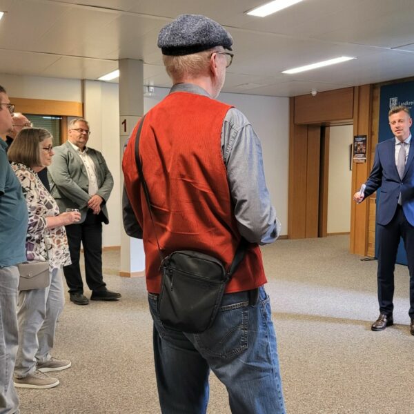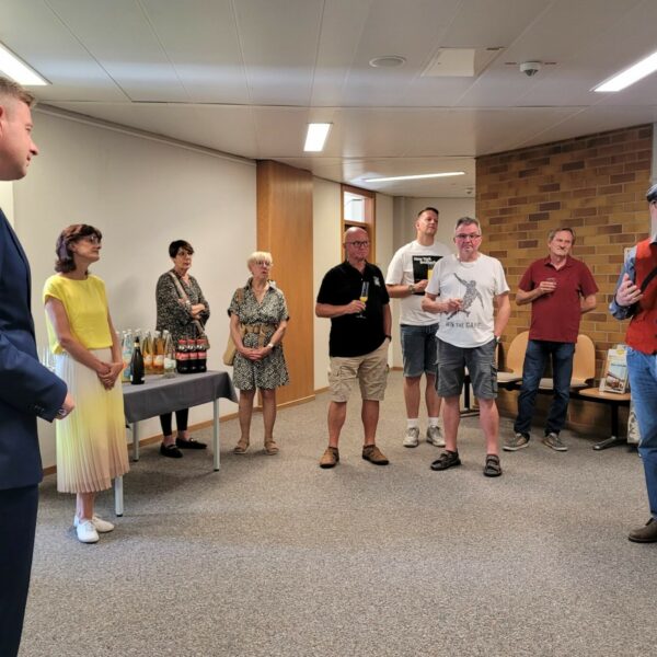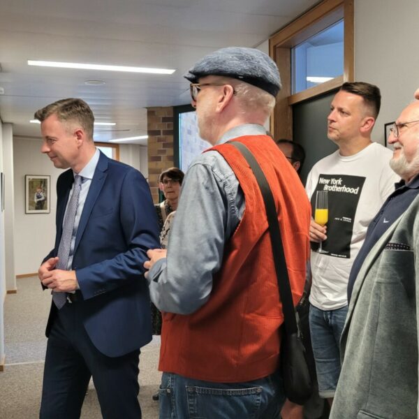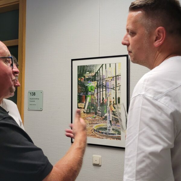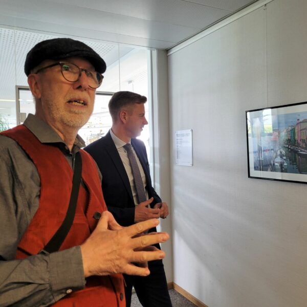 „Die spannende Person, die Sie sind, spiegelt sich auch in Ihren Bildern wider“, beschrieb Landrat Dr. Bär bei der gestrigen Eröffnung seinen persönlichen Eindruck von der Ausstellung. „Ich freue mich, dass Sie bei uns ausstellen und das Landratsamt damit bereichern.“