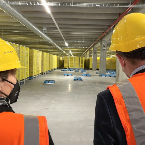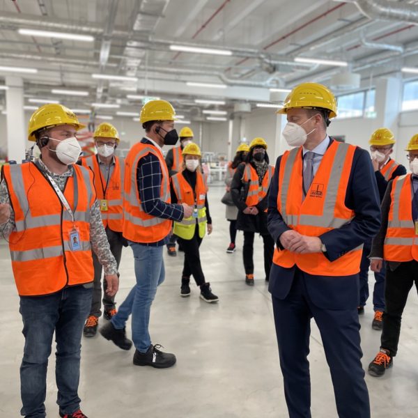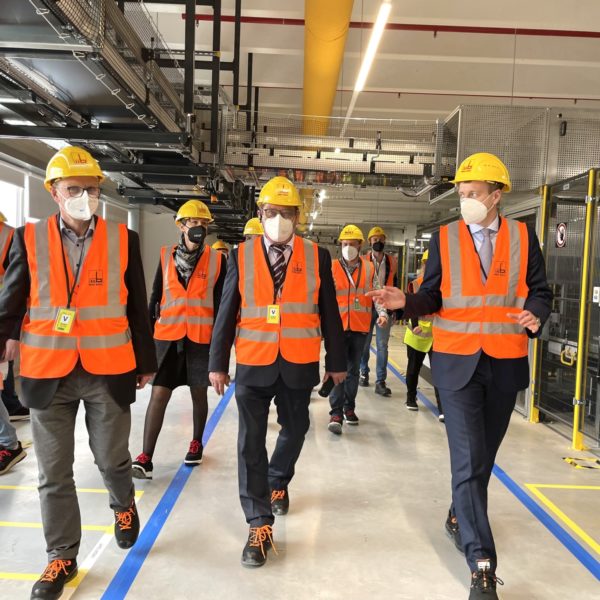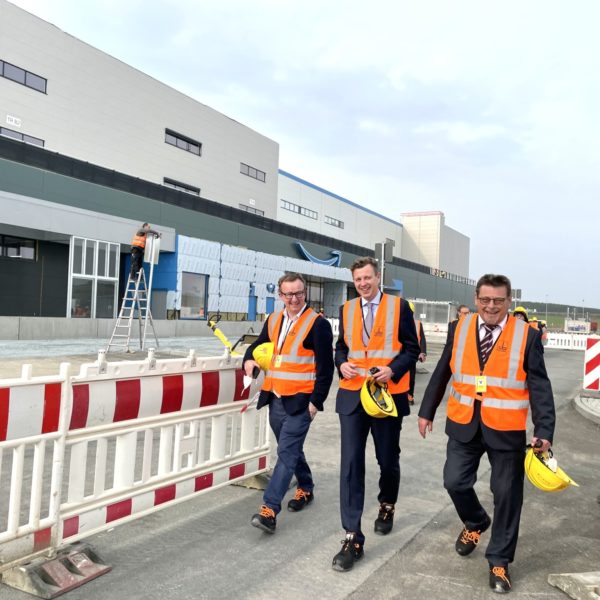 „Wir haben bereits bei den Vertragsverhandlungen einen hochprofessioneller Eindruck von Amazon gewonnen und dieser setzt sich über die Baustelle bis hin zur ersten Besichtigung des künftigen Logistikzentrums heute fort. Insgesamt sieht man aber auch, wieviel sich drumherum tut. Es ist wie ein Magnet, der Stecknadeln zum Ausrichten bringt. Wir sehen, dass die ÖPNV-Verbindungen verbessert werden, Radwegeverbindungen hierher werden geschaffen. Wir spüren außerdem, dass ein hohes Interesse an unserer Region seitens anderer Unternehmen besteht. Vieles, was mit Amazon in Verbindung steht, führt im Hofer Land gerade zu einer gewissen Bewegung. Im Verhältnis glaube ich daher, dass wir mit Amazon einen wirklich positiven Effekt für die Region erzielen werden“, so Landrat Dr. Oliver Bär bei der Besichtigung des Logistikzentrums.