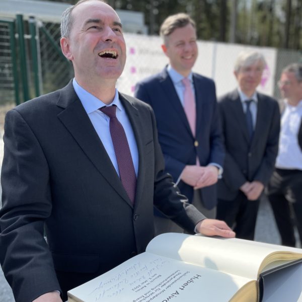 "Rehau zeigt, wie es geht und hat den Mobilfunkausbau selbst in die Hand genommen. Die letzten Lücken im ansonst guten Netz der Stadt werden so geschlossen. Von Beginn an wird hier auch über 5G gesendet. Der neue Funkmast in Faßmannsreuth ist damit ein sichtbares Zeichen für die digitale Zukunft im ländlichen Raum. Mit 500.000 Euro aus unserem Förderprogramm haben wir nahezu die gesamten Kosten für die Bauarbeiten übernommen. Ich bin zuversichtlich, dass die Netzbetreiber jetzt sehr zügig die Funktechnik installieren, damit der Mast planmäßig im Sommer den Sendebetrieb aufnehmen kann. Mein Dank gilt dem Bürgermeister Michael Abraham und seinen Mitarbeiterinnen und Mitarbeiter im Rathaus für ihren großen Einsatz."