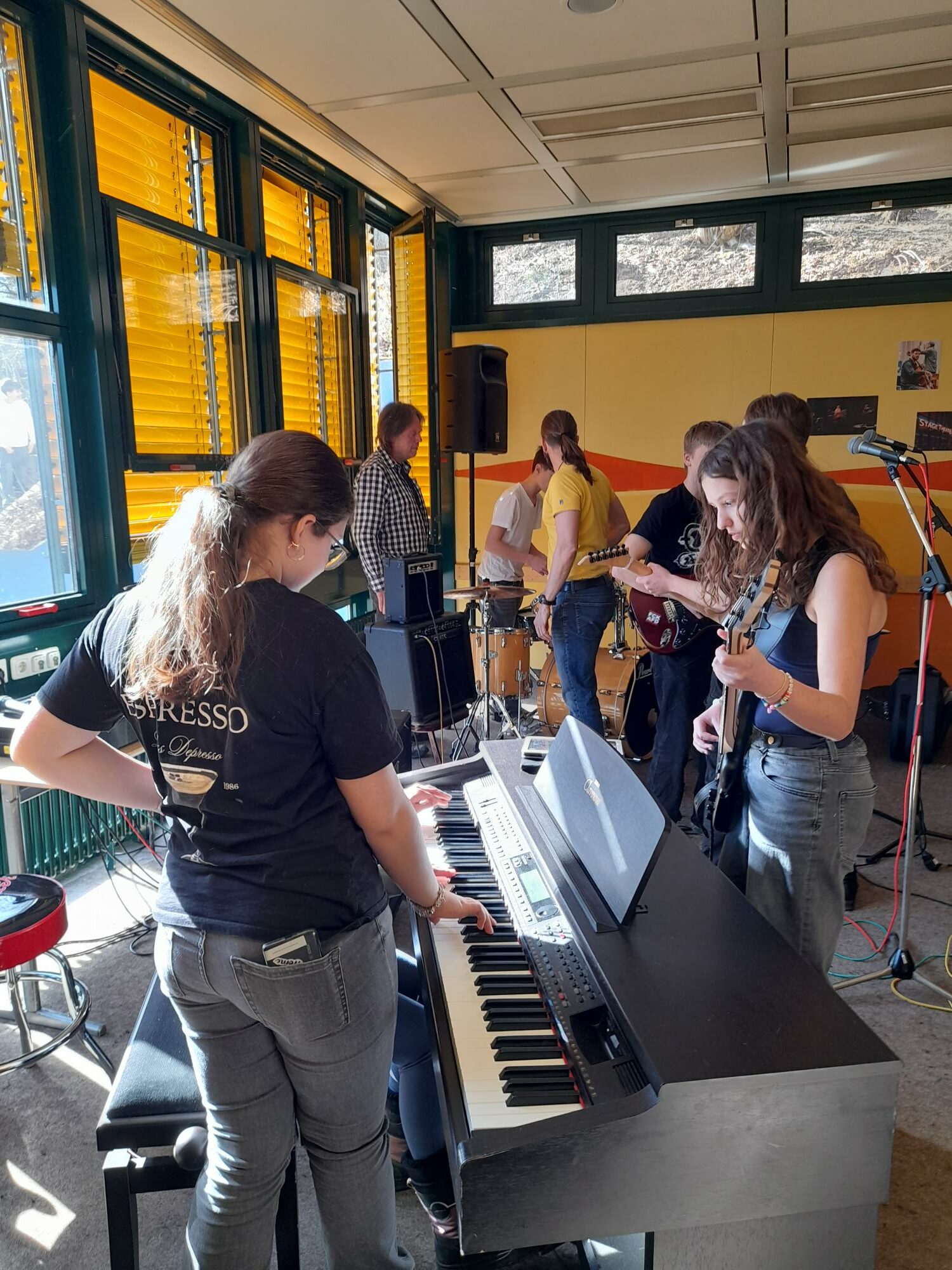 Die Musiker brachten ihr eigenes Equipment mit, zeigten ihr Können und bekamen dann professionelle Unterstützung und Anleitung. Dazu konnten sich die jungen Talente ausgiebig mit den Musik-Profis austauschen.