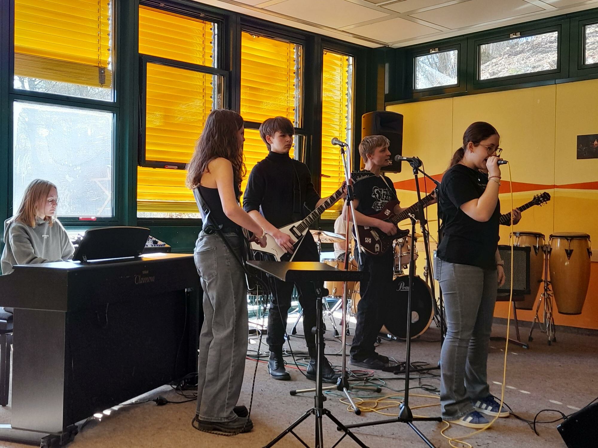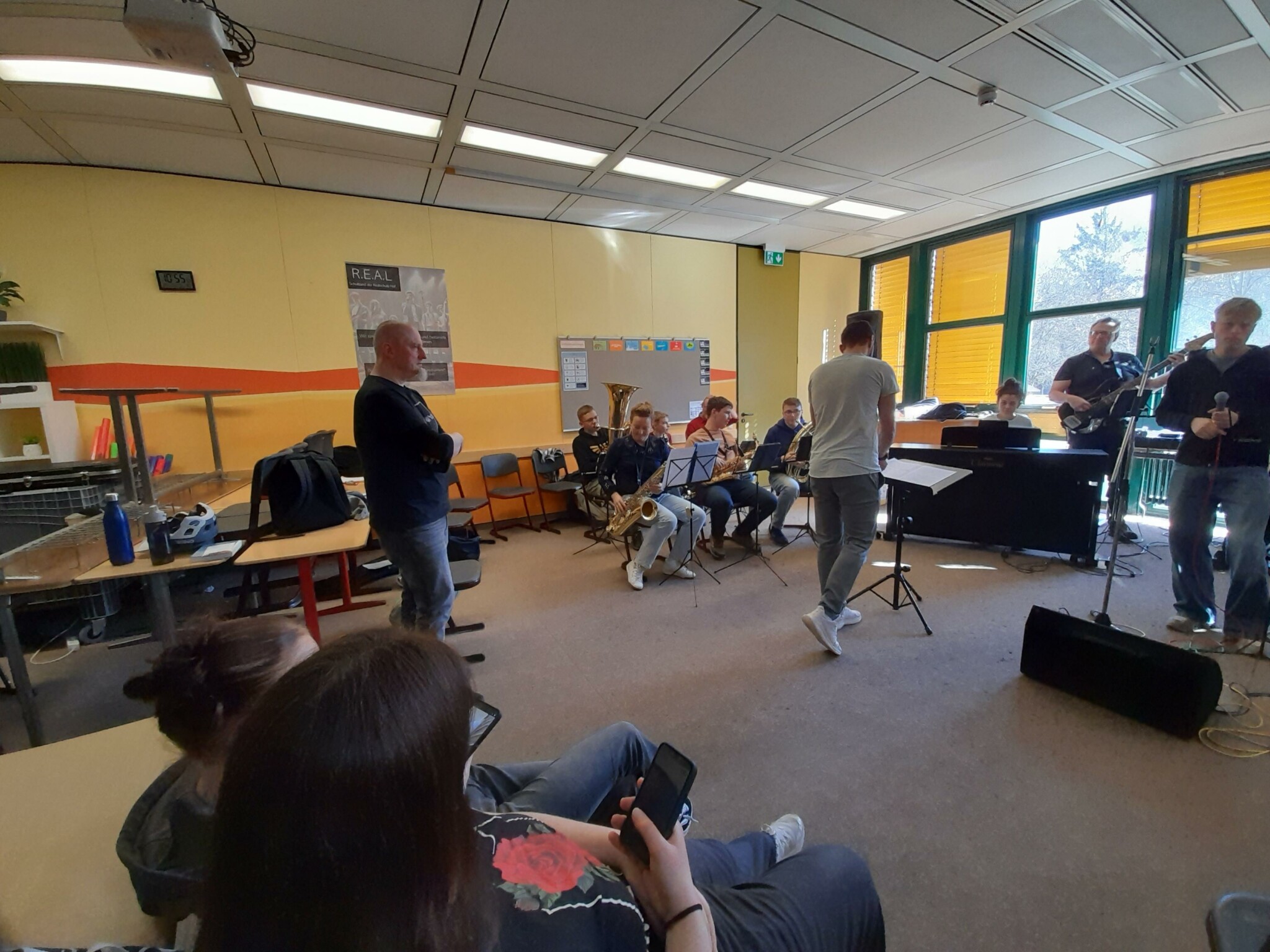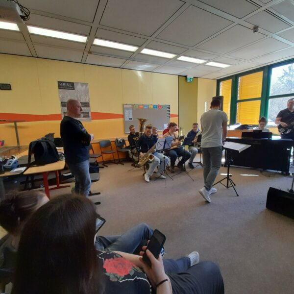 In der Realschule in Hof fand nun das erste Band-Coaching des Jahres mit Tontechnik-Experten Harry Tröger und Oliver Schmidt von der Musikschule Music Mania für Gesang und Instrumente statt. An dem Workshop nahmen die Band des Reinhart-Gymnasiums und die Band der Realschule Hof mit 20 Schülerinnen und Schüler teil.