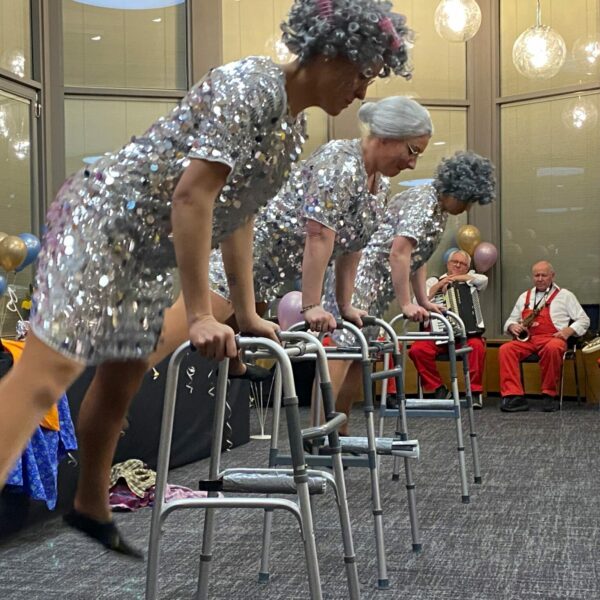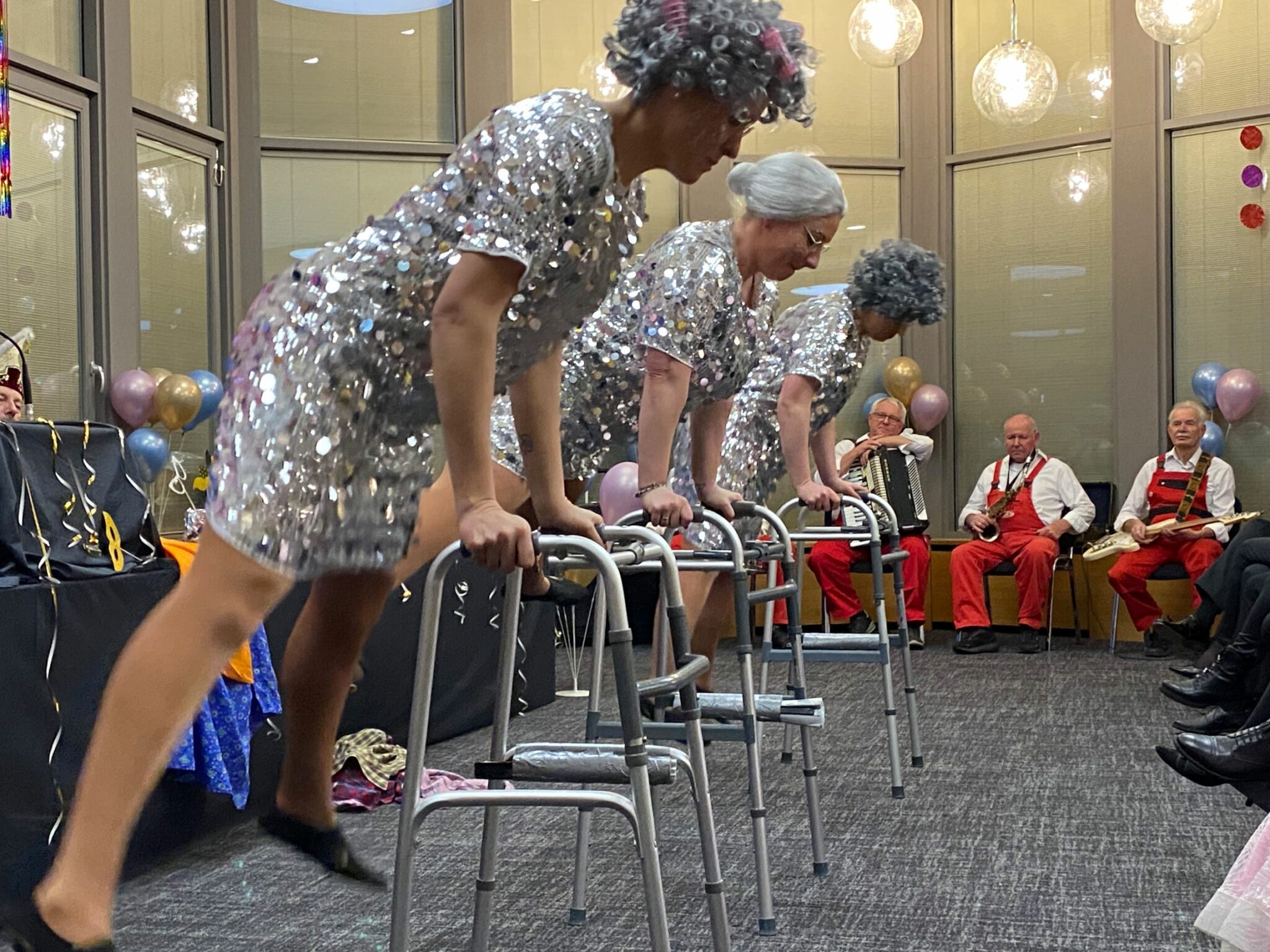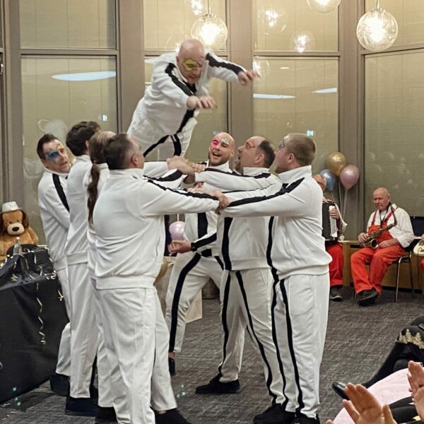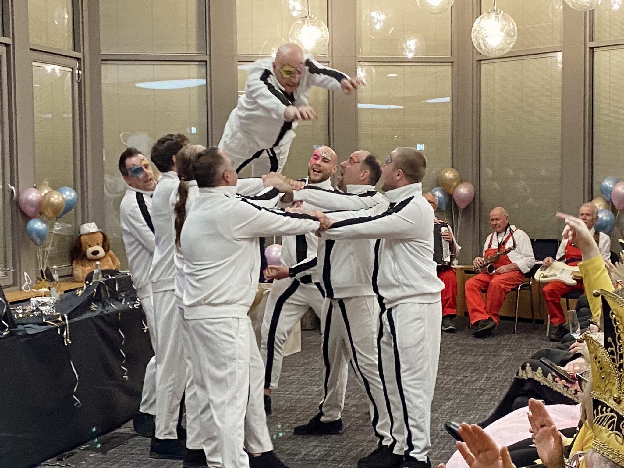Einen kleinen Einblick in die Vielfalt und Qualität der Akteure der Karnevalsgesellschaften gab es dann auch im Sitzungssaal des Landratsamtes. Das Helmbrechtser Ü15-Tanzpaar Jenny Schmidt und Tim Fichtner, drei Mädchen der Prinzessinnengarde der TSG Münchberg und das Männerballett „Die Fastnachtshirsche“ aus Rehau verwandelten den Teppich in ein Tanzparkett. Die beiden Helmbrechtser Nachwuchs-Narren Letizia Zeh und Henry Siemon begeisterten mit ihrer Kinderbütt, Claudia und Kalli aus Lippertsgrün suchten in Italien Sangria-Eimer und Maria, Sabine und Kerstin alias Tri-Ri-Tere von der Narhalla Hof alterten während ihres Auftritts rückwärts. Die „Hofer Schlawienerla“ traten mit Frank Wilutzki als Solo-Schlawiener in verkleinerter Besetzung auf und vertonten Geschichten rund ums Hofer Land. Musikalisch begleitete die Fidele Hinterachse den Abend.