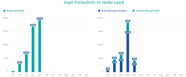 Seit Beginn der Impfungen Ende Dezember konnten in Stadt und Landkreis Hof insgesamt 34.765 Dosen im zentralen Impfzentrum oder durch mobile Impfteams geimpft sowie im Rahmen unseres Pilotprojektes an Hausärzte abgegeben werden (Stand 4.4.2021).