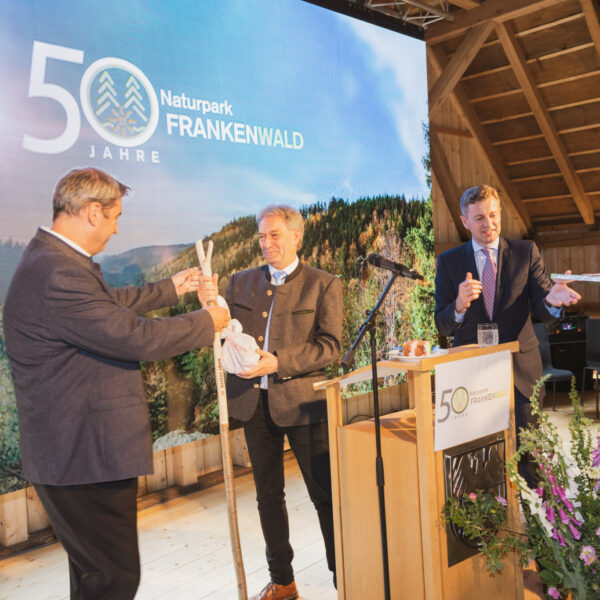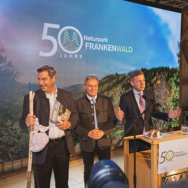 Mit einem Festakt wurde heute das 50-jährige Bestehen des Naturparks Frankenwald gefeiert. Dazu begrüßten die drei Vorsitzenden des Naturparks – der Kronacher Landrat Klaus Löffler, der Hofer Landrat Dr. Oliver Bär und der Kulmbacher Landrat Klaus Peter Söllner – den Hauptredner Ministerpräsident Dr. Markus Söder. Die Feier bildet den Höhenpunkt des Jubiläumsjahres, das mit zahlreichen Veranstaltungen begangen wird.